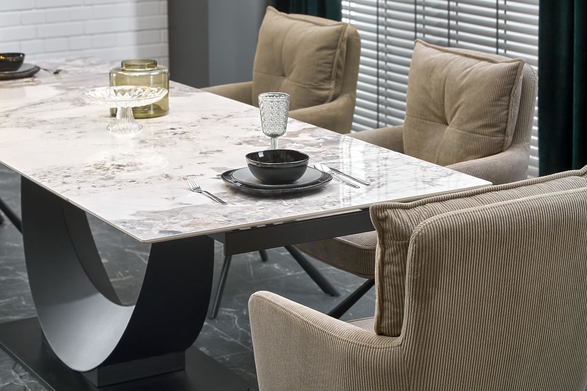Lukafurniture.eu » Dining room a kitchen / Dining tables / FERNANDO Extendable Table, Top - White Marble, Legs - Black (3p=1pc)