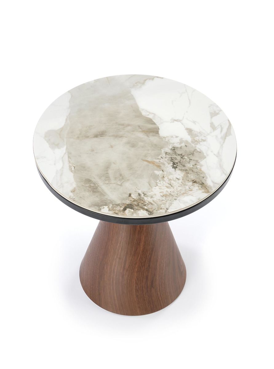 Ceramic and steel table with a marble, walnut, and gold finish. .. more