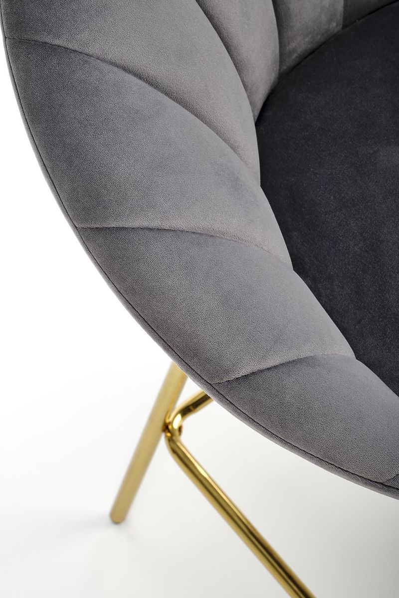 Gray and gold bar stool with velvet fabric and chrome steel. .. more