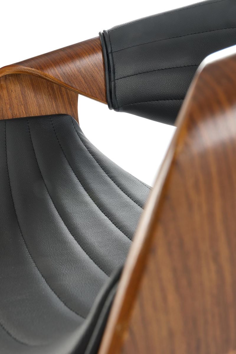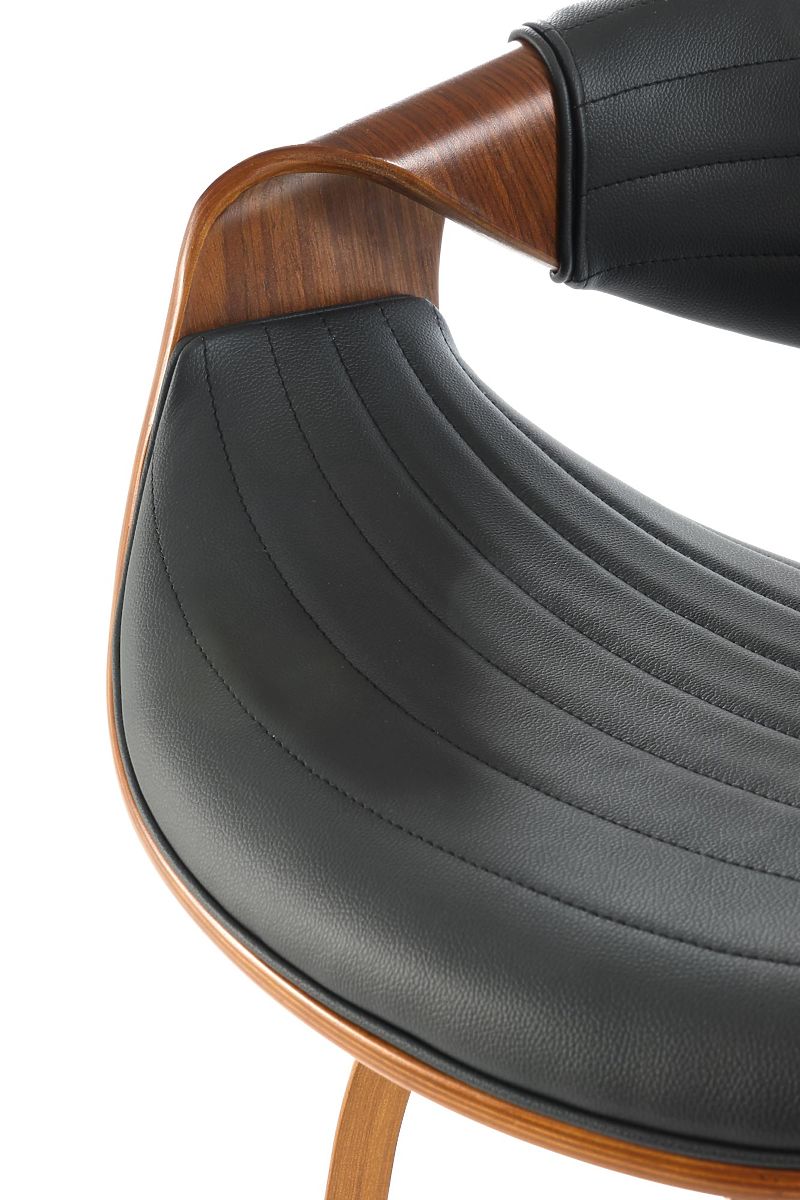Black and walnut bar stool with eco-leather and chrome steel. .. more