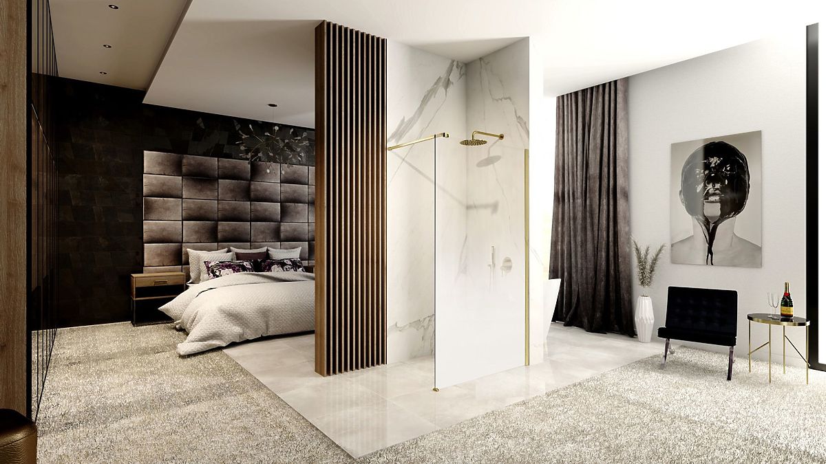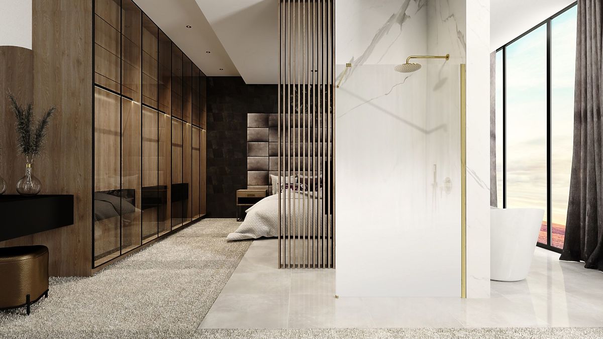 Shower Wall Rea Aero Ombre Gold Brushed/White 110