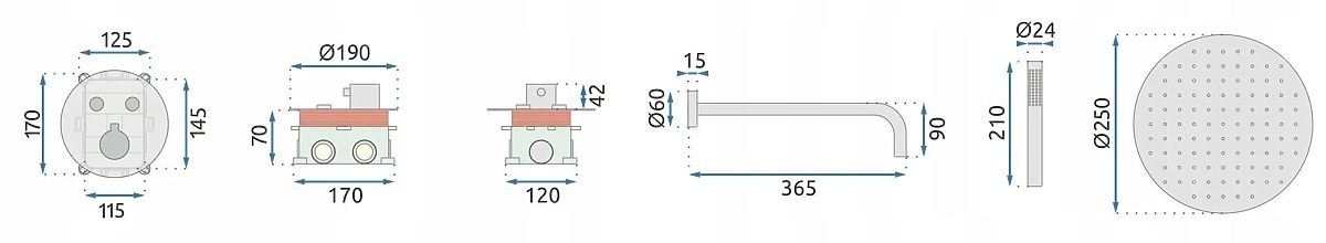 Lukafurniture.eu » Bathroom & Toilet / Showers a accessories / Concealed Shower Set with Thermostat LUNGO Brushed Copper + BOX