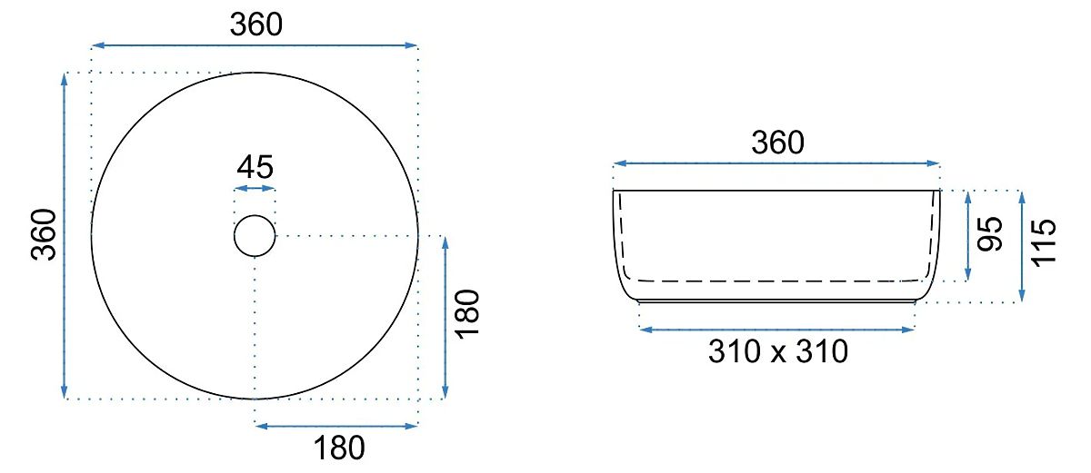 The Sami countertop washbasin is an exceptional bathroom fixture that combines modern style with functionality. Its elegant, round shape and subtle blue color ensure it fits perfectly into both classic and modern arrangements. Made from high-quality sanitary ceramic, it is not only durable but also easy to keep clean, allowing for long-term and convenient use. The model is mounted directly on a countertop or cabinet, allowing for maximum space utilization and creating an elegant, minimalist composition.