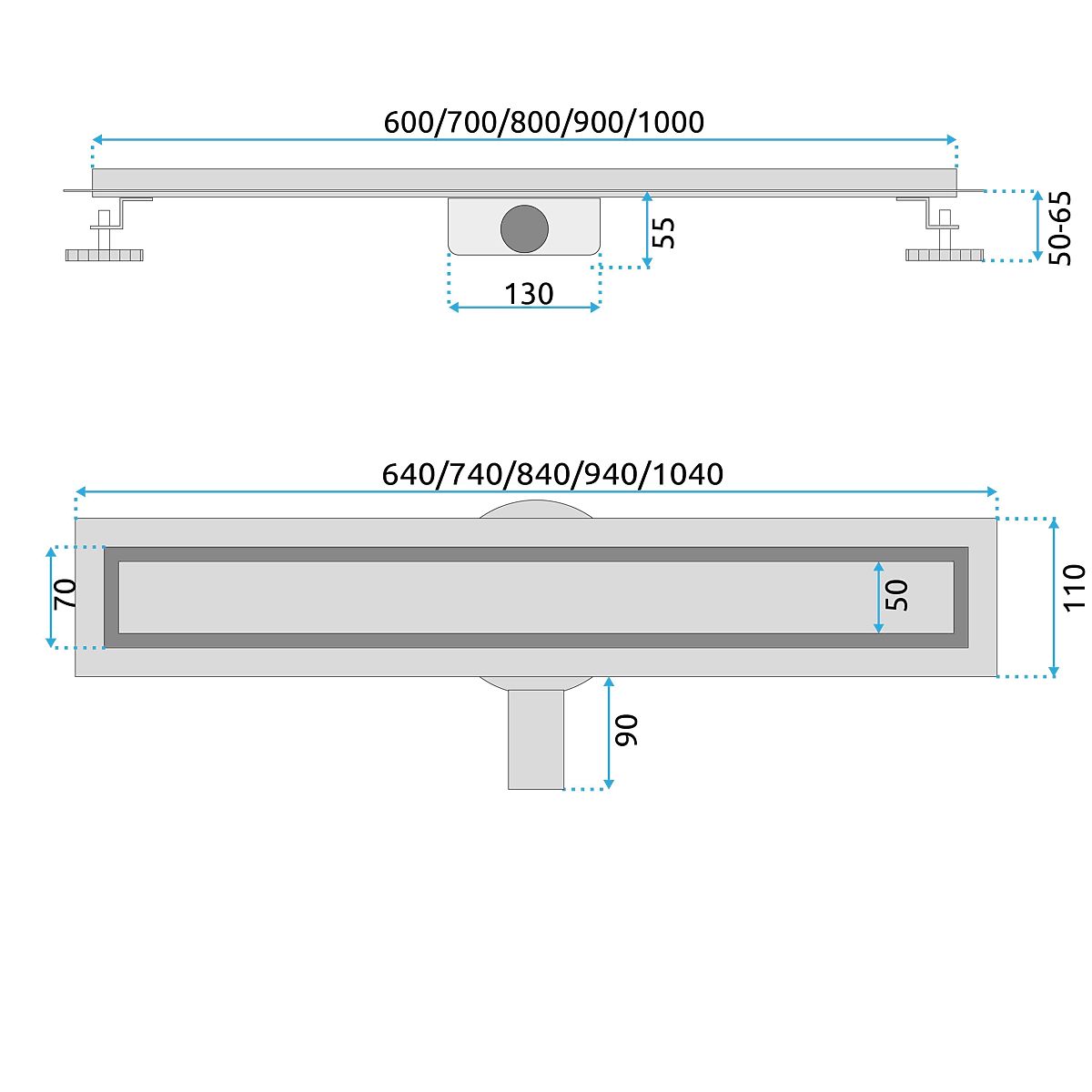 The Neox linear drain is a modern replacement for traditional shower trays. It offers an elegant appearance and allows for easy maintenance of cleanliness in the bathroom space. It perfectly fills your bathroom area while maintaining a flawless look and interior aesthetics. The drain is made from the highest quality Aisi 304 stainless steel. The drain cover is double-sided, allowing a choice between two finishes – aluminum or a tiled insert, enabling customization to suit any bathroom decor. The linear drain is equipped with a dry siphon.