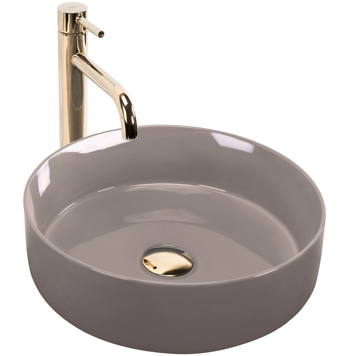 The Sami countertop washbasin is a perfect blend of modern design and functionality. Made from high-quality ceramic, it features a round shape that brings harmony and elegance to the bathroom. The beige color with a glossy, shimmering surface makes the washbasin an exceptional decorative element, ideal for modern, Scandinavian, or classic arrangements.