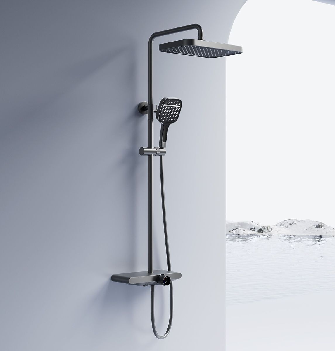 Wall-mounted shower set with rain shower head and quadruple coating. .. more