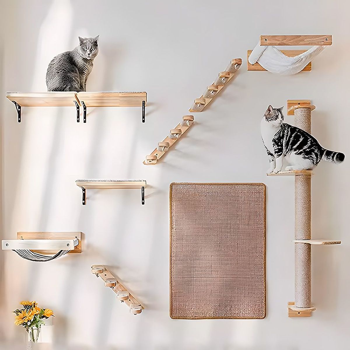 We present to you a durable and aesthetic cat hammock. It is an ideal place for rest, but also serves as a play area for your cat. The hammock can be combined with other wall elements to create a track for our furry four-legged friends. Thanks to the use of high-quality materials, the hammock is durable even for large cats.