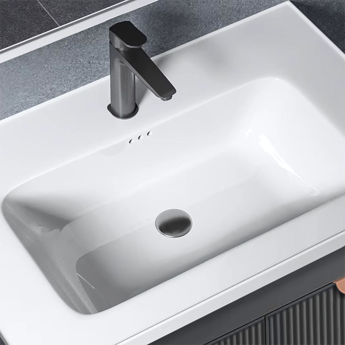 The set includes a ceramic sink with a tap hole, sized to fit the lower cabinet. Its universal form blends well with the rest of the set, creating a unified and aesthetic whole. Mario is a set that offers a cohesive look and practical solutions – ready for assembly and immediate use in any modern bathroom.