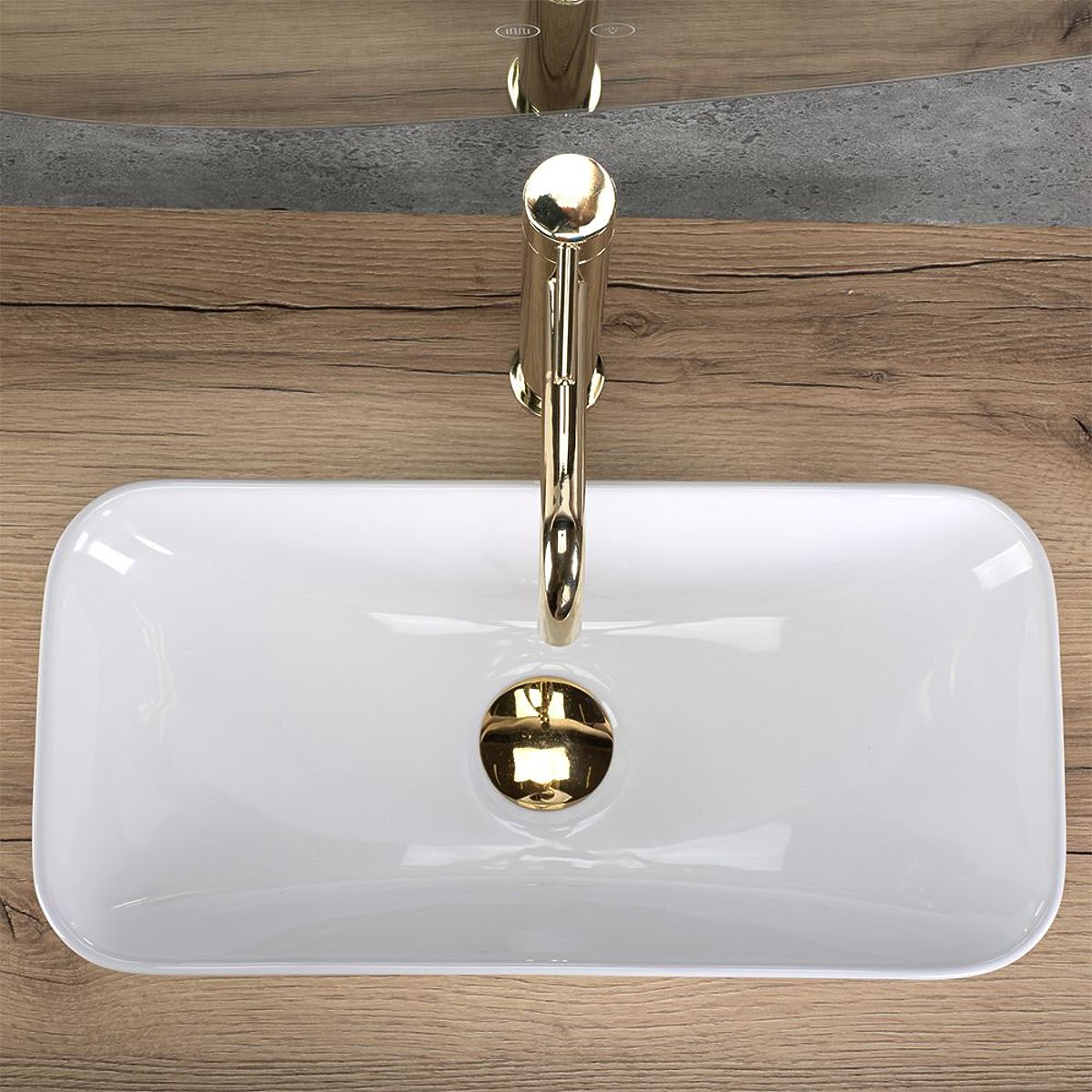 We present to you a timeless sink that will transform the look of your bathroom, bringing modernity and subtle elegance. Its snow-white ceramic perfectly fits luxurious arrangements.