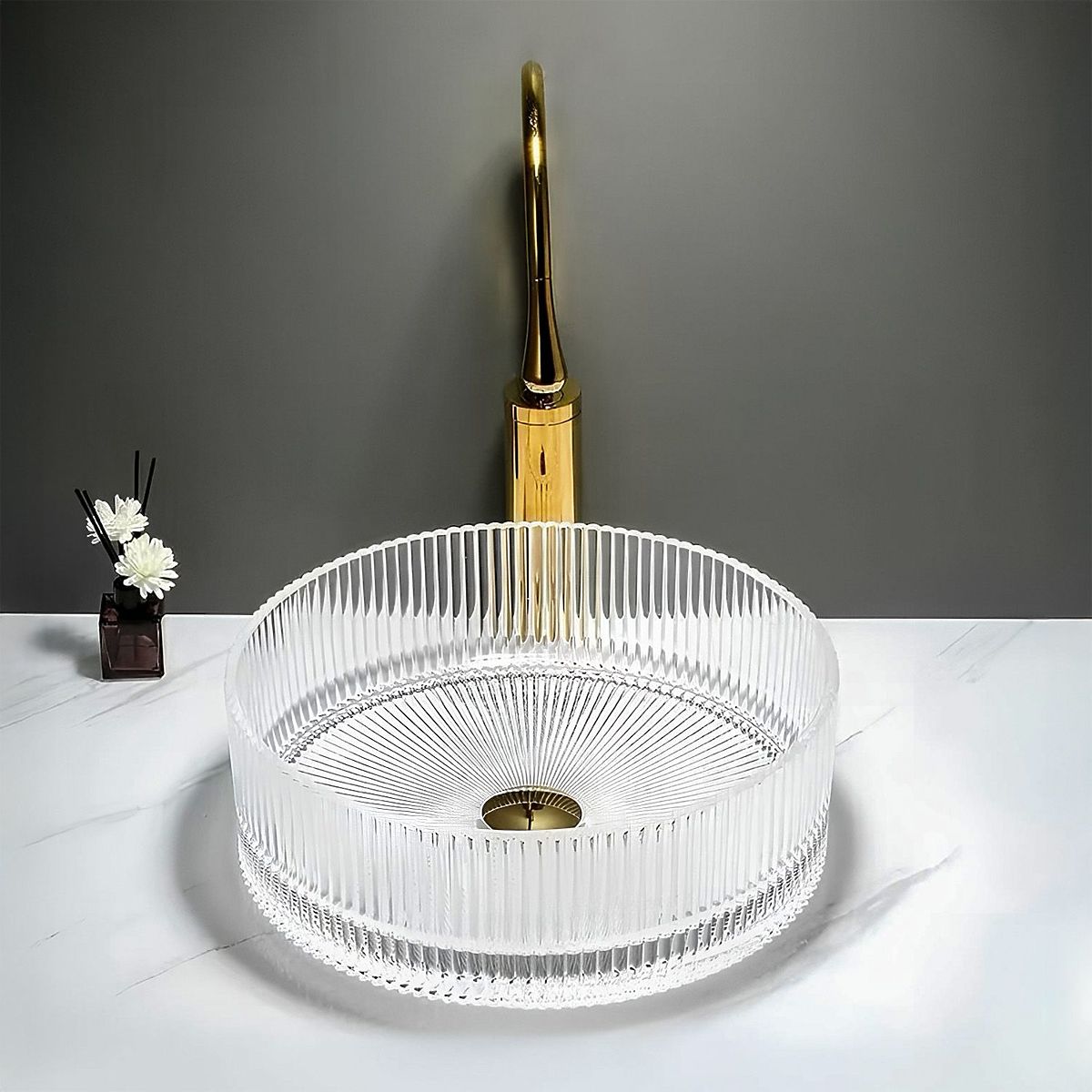 The Ingrid 36 furniture washbasin is the perfect choice for those seeking an elegant and original solution for their bathroom. Made from high-quality glass, it features a grooved surface and transparent design, adding a unique character and luxurious style to the interior.