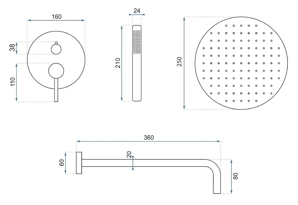 The Lungo concealed shower set is designed for those who appreciate modern design, comfort, and reliability. The set includes an overhead shower, a practical handheld shower, and a concealed mixer with a function switch, allowing for convenient use of the shower in any situation.