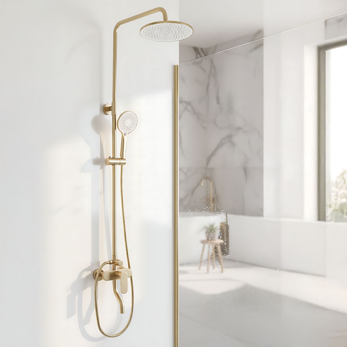 The shower set in elegant brushed gold color is a modern and functional solution that highlights the unique character of your bathroom. The minimalist design combined with luxurious execution ensures that the set fits perfectly into both glamour arrangements and modern interiors.