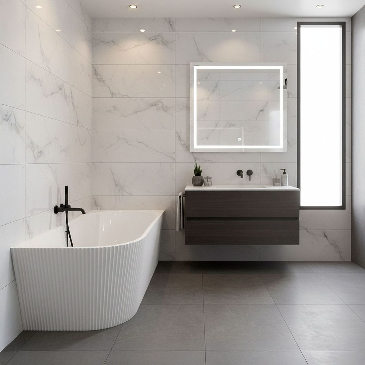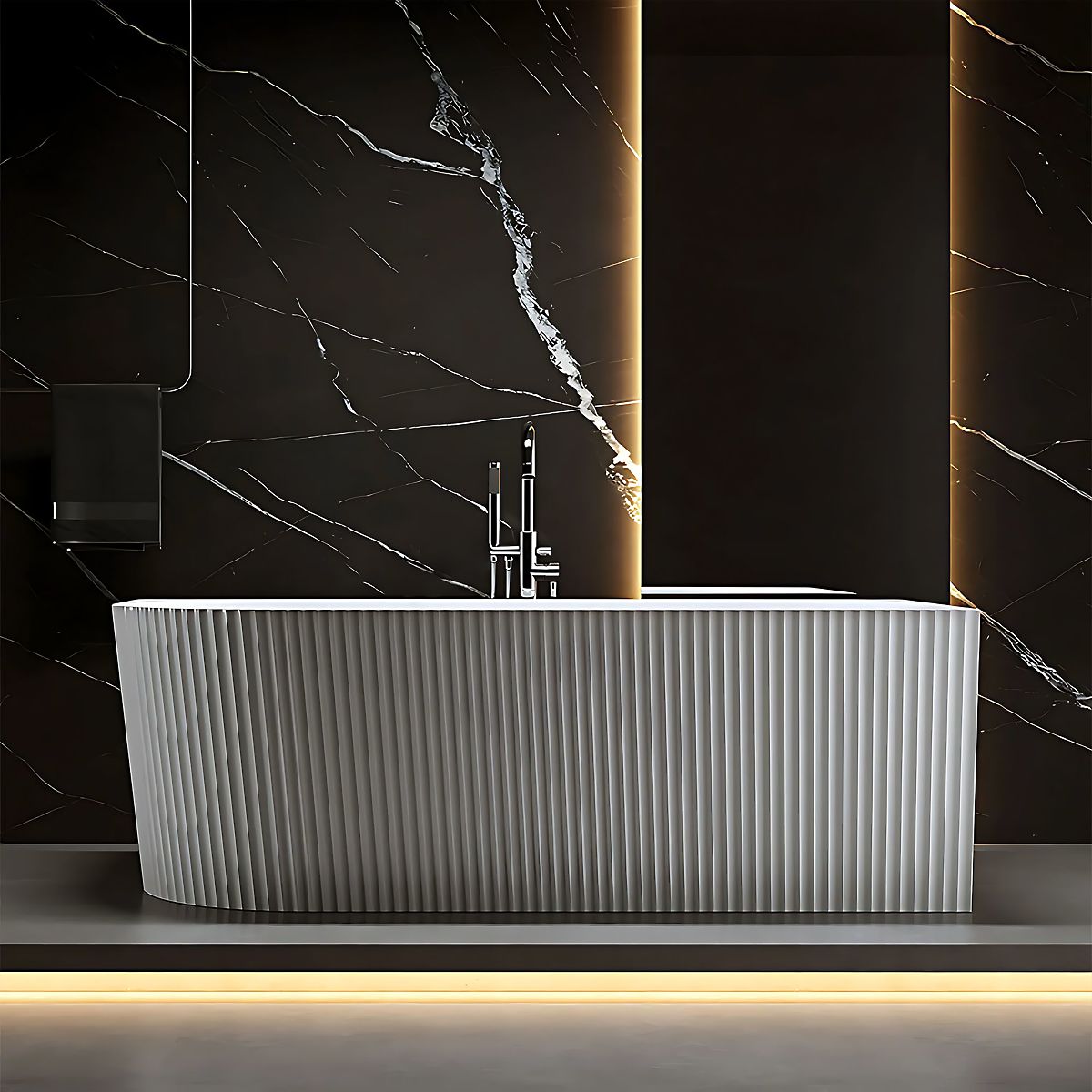 The modern ribbed bathtub is a combination of unique design and exceptional comfort. Its distinctive, vertically ribbed surface adds an original character to the interior and perfectly matches fashionable bathroom arrangements in modern, glamour, or minimalist styles.