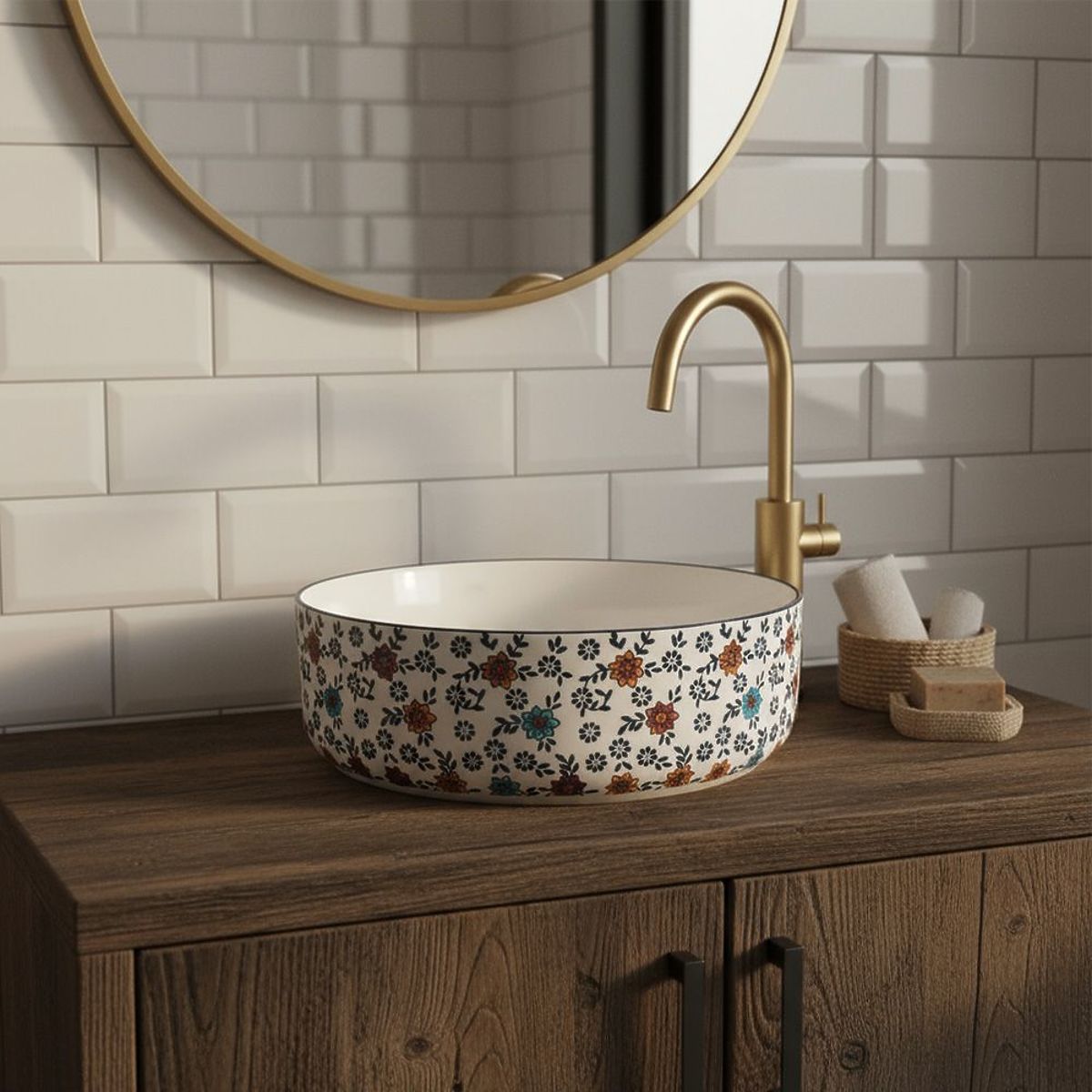 Are you looking for a sink that will become the centerpiece of your bathroom? Discover the timeless Rea Stefania sink model, which combines a smooth, matte finish with a unique, multicolored floral pattern. Made from high-quality sanitary ceramic, this round sink is an ideal choice for those who appreciate original, rustic design and high-quality craftsmanship. Matte finish – gives the sink a modern and elegant character, pleasant to the touch and easy to clean. Unique floral pattern – multicolored decoration on the exterior makes the sink a central decorative element of any bathroom. High-quality sanitary ceramic – ensures resistance to daily use and durability of color and surface. Timeless installation – allows full display of the patterned body’s beauty on any bathroom countertop. Round bowl shape – a classic and timeless form that is both elegant and practical for everyday use. Without a tap hole – designed for installation with high (standing) or concealed (wall-mounted) taps. Without an overflow hole – emphasizes the minimalist and smooth design of the inner bowl, providing a perfectly smooth surface. The timeless Rea Stefania sink is an excellent choice for those who value originality and want to bring a touch of color to their interior in a stylish, matte finish.