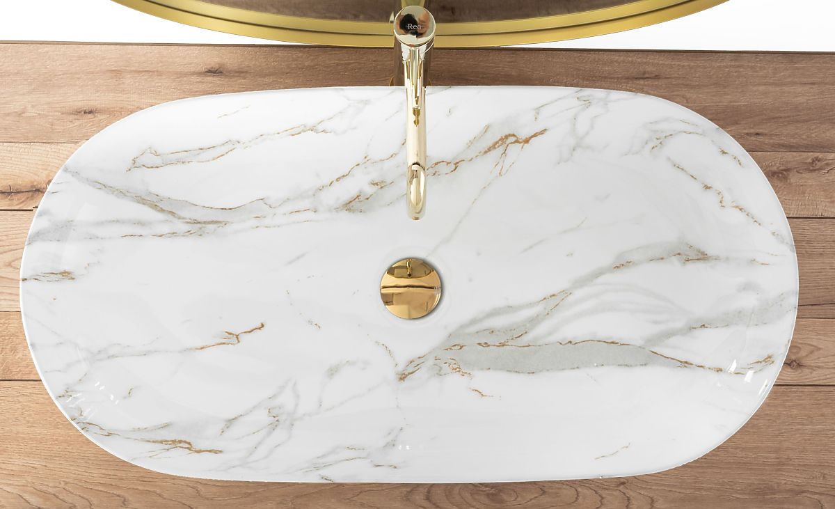 We present to you a modern, unique washbasin with a stone pattern and an unusual shape. The Cleo washbasin will bring elegance to your bathroom, becoming either an exceptional element or a subtle accessory. If you opt for the shine of this noble color, the final effect will surely gain lightness and originality.