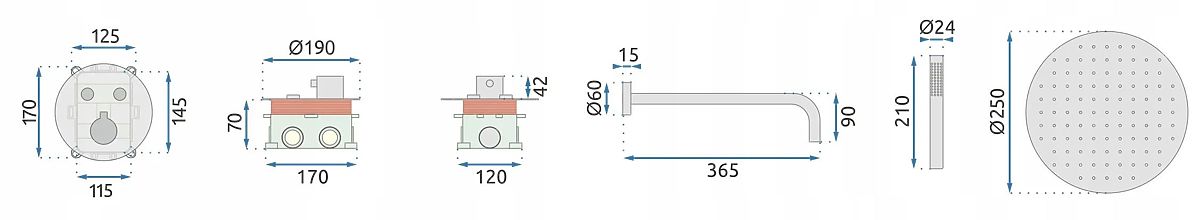 Lukafurniture.eu » Bathroom & Toilet / Showers a accessories / Concealed Shower Set with Thermostat LUNGO Black + BOX
