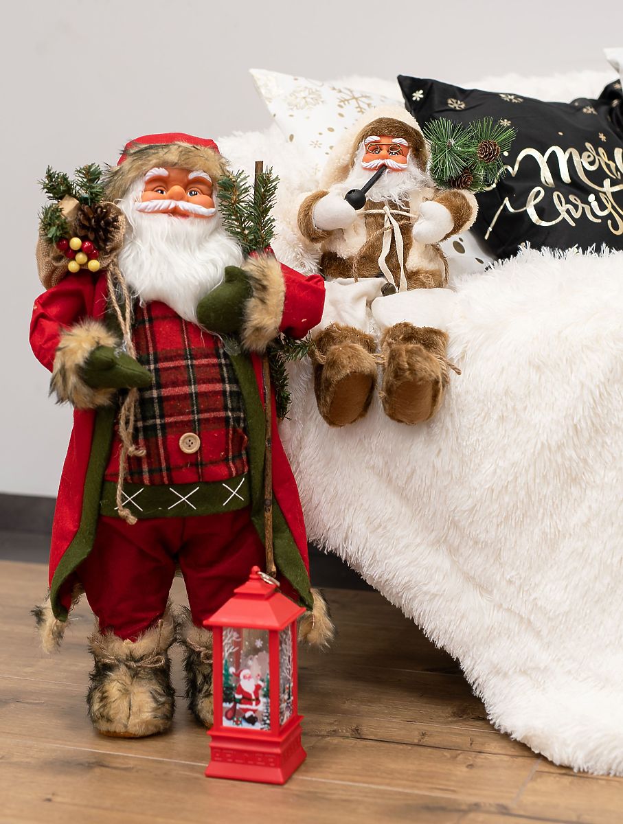 A beautiful sitting figure of Saint Nicholas is a great decoration for your home, bringing the Christmas atmosphere to your household. Nicholas has small bells, a pipe, and a bag with a tree and cones. The figure is made of plastic and covered with pleasant cotton clothing, ensuring durability and high-quality craftsmanship. It has a stable construction and high-quality craftsmanship.