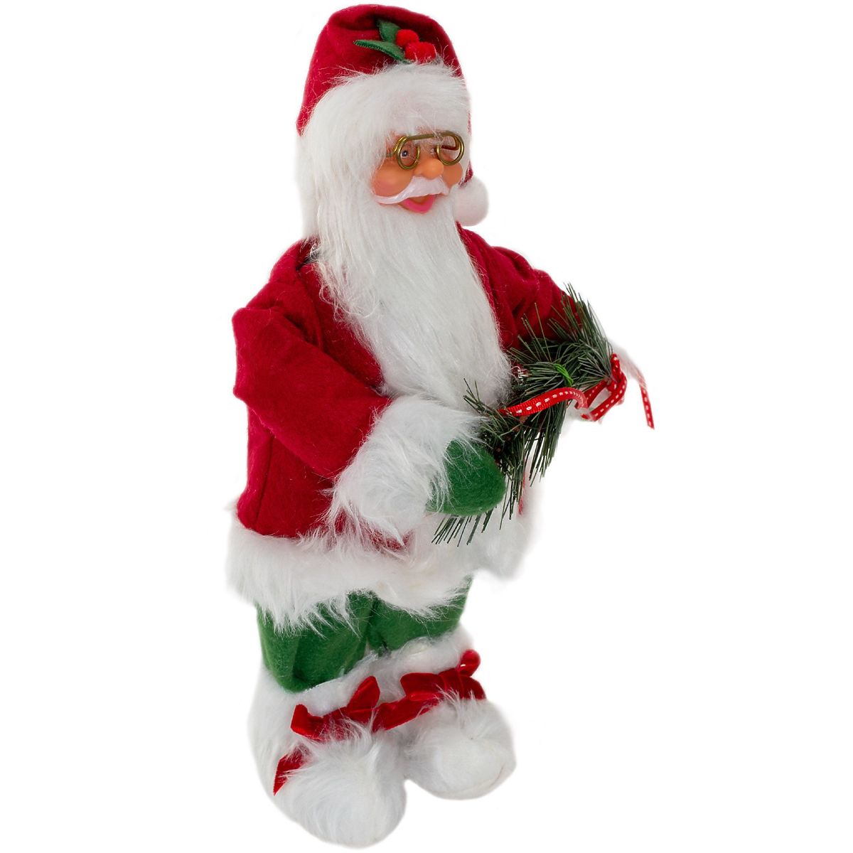 A beautiful standing Santa Claus figurine is a great decoration for your home, bringing the Christmas atmosphere to your household members. The figurine is made of plastic and covered with a pleasant cotton outfit, ensuring durability. It has a stable structure and high-quality craftsmanship.