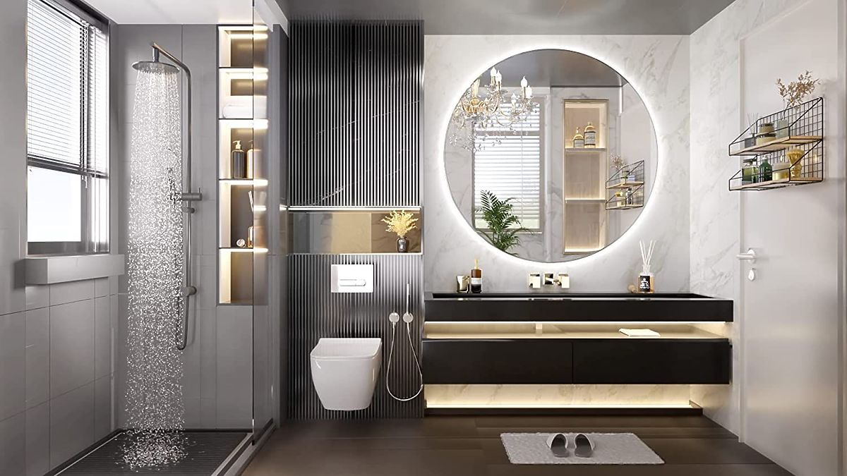 The round mirror with LED lighting is the perfect choice for those who value convenience and modern design. Made from the highest quality materials, it looks great and is very durable. It offers three touch-changeable LED light colors – warm, neutral, and cool, and a heating function that prevents the surface from fogging. The touch switch located on the mirror surface is backlit in blue when the function is activated. The white power cable is 110 cm long.