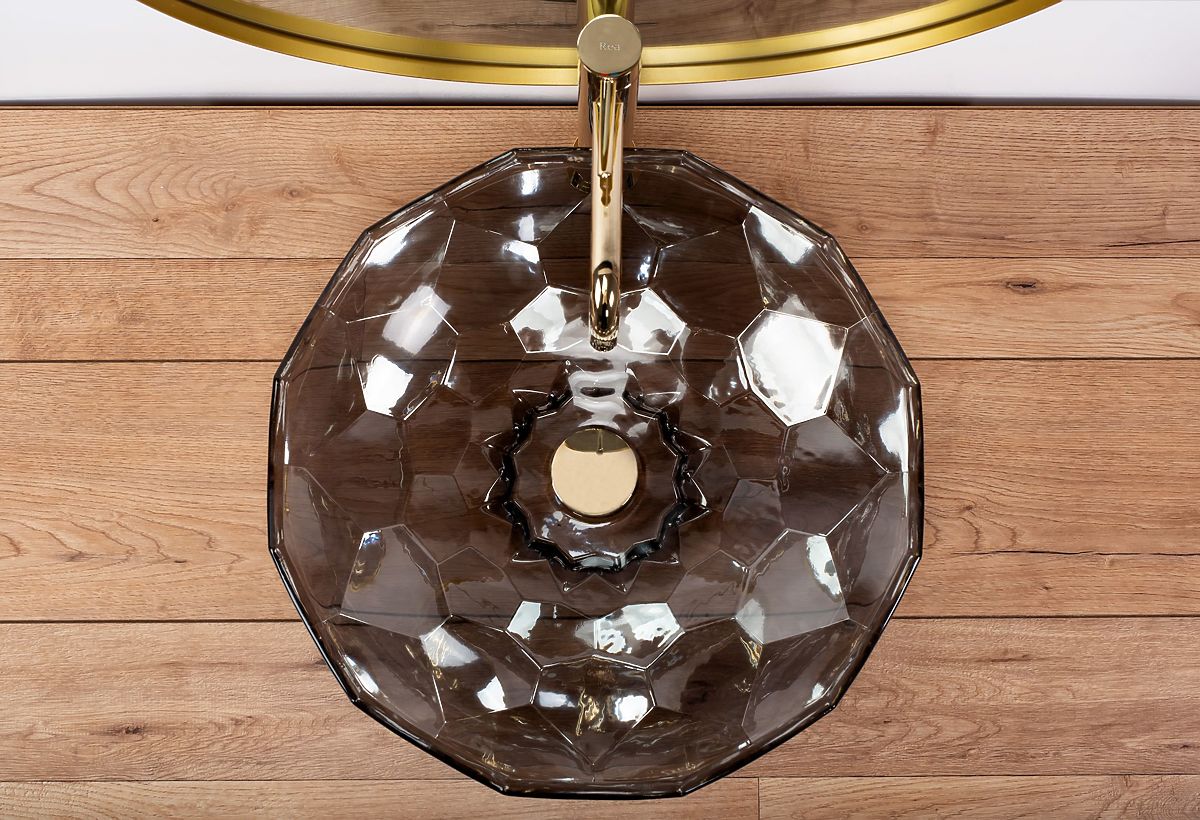 The modern Arctic Black washbasin combines a refined bowl shape with the exceptional material from which it is made – smoked glass. The Arctic Black is a glass washbasin that mounts directly onto the countertop, allowing for space-saving bathroom organization. Its distinctive shape makes the washbasin a decoration for any interior.
