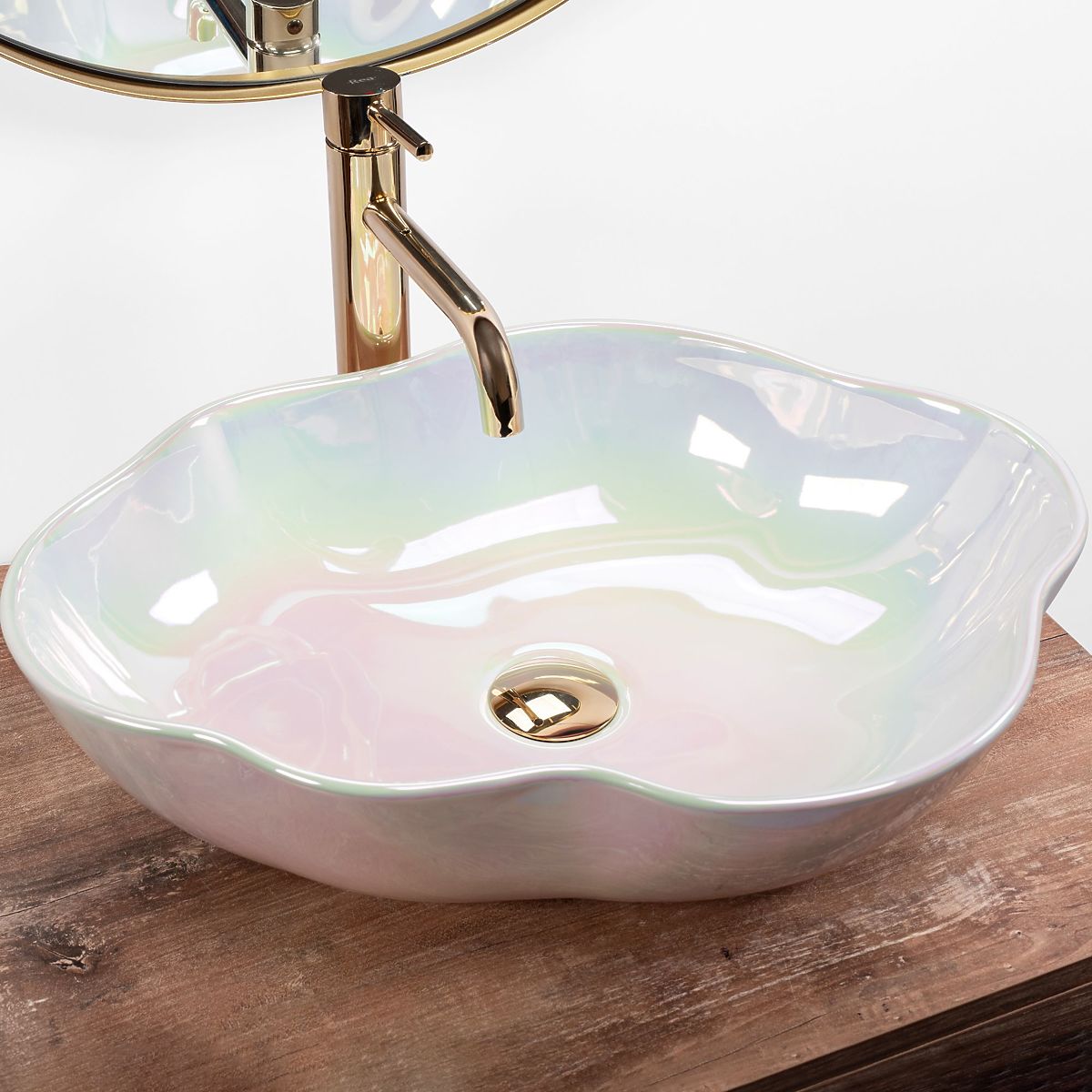 We present to you a timeless washbasin that will give your bathroom a modern look and high functionality. The pearlescent high-gloss surface and oval, wavy shape add elegance and decorate the interior. It will be a great addition for lovers of non-standard shapes and color combinations, bringing elegance to the bathroom arrangement.