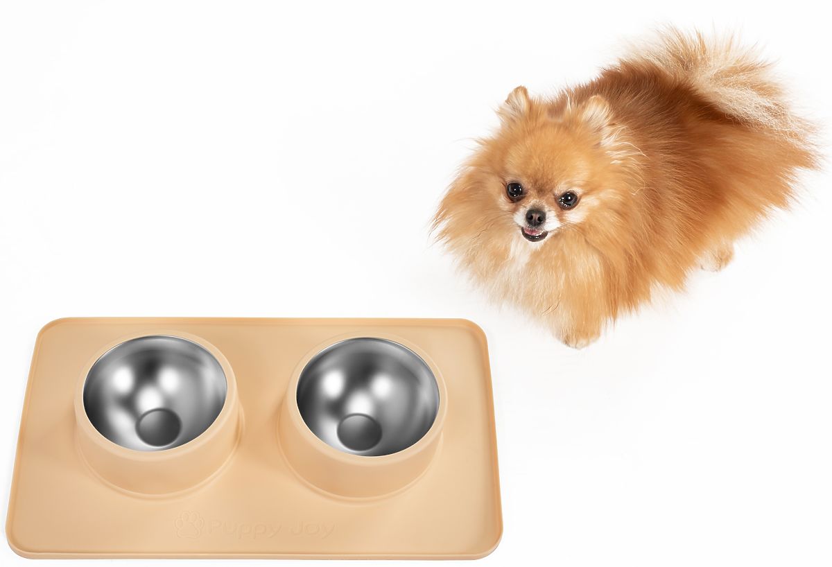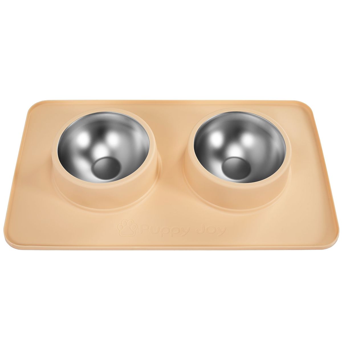 Metal Bowls for Dog or Cat with Non-Slip Mat Beige PJ-089