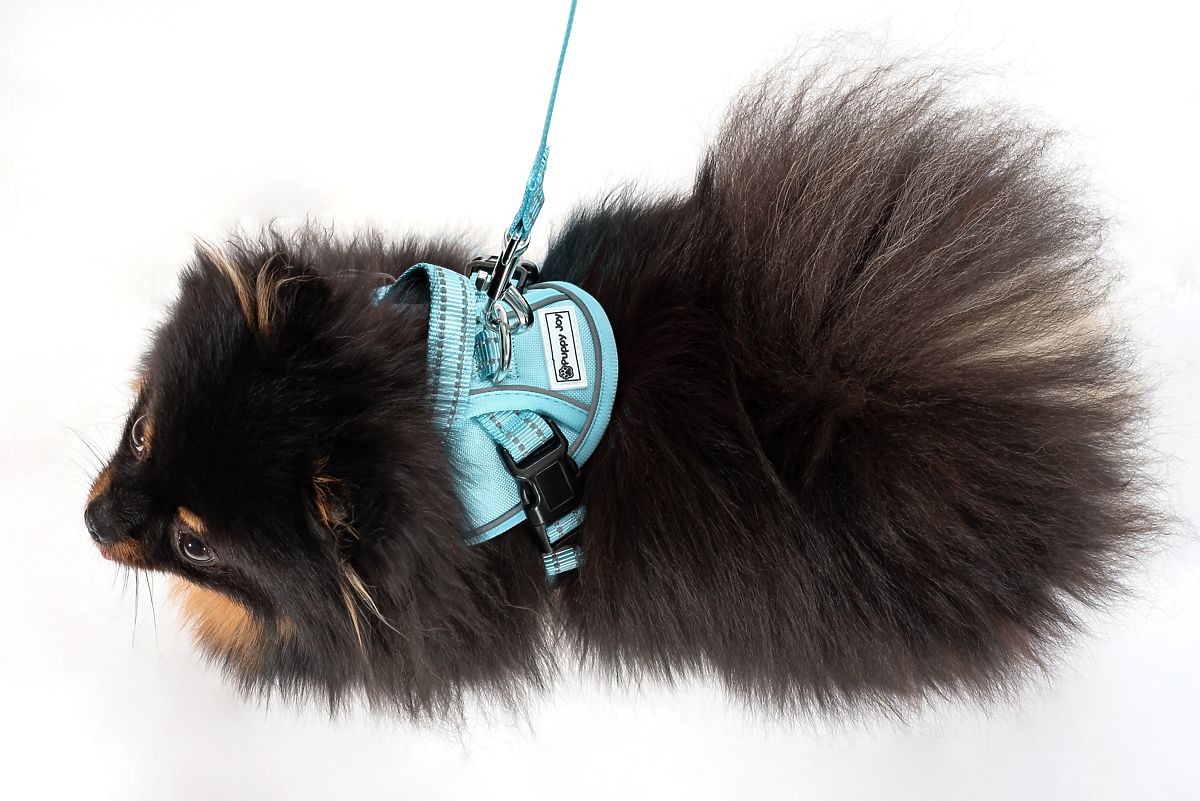 A practical and fashionable reflective set of leash and harness made from durable material. This set is the perfect solution for any dog owner who values not only their pet's comfort but also style and quality.