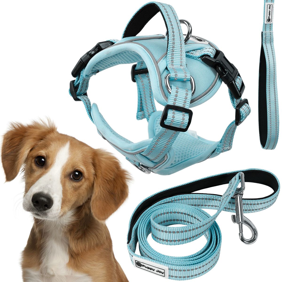 Reflective dog leash and harness set in blue. .. more
