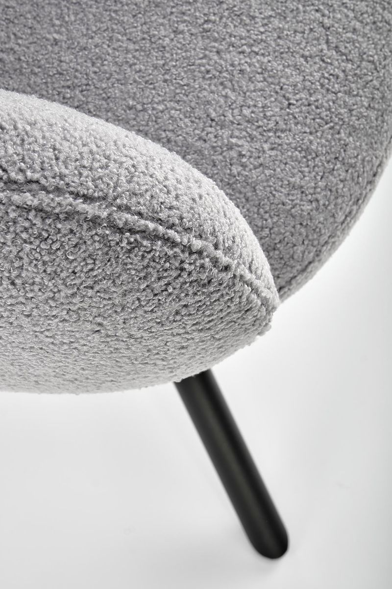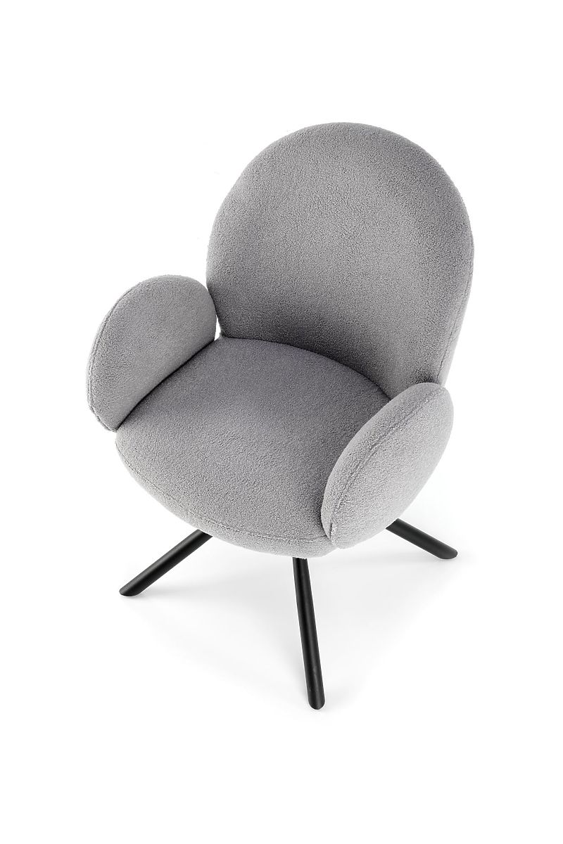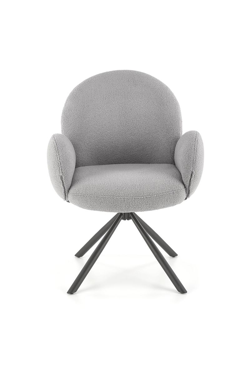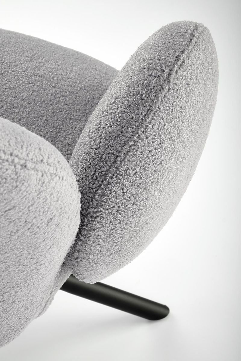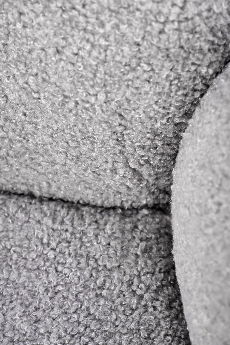 Gray swivel chair with boucle fabric and steel frame. .. more