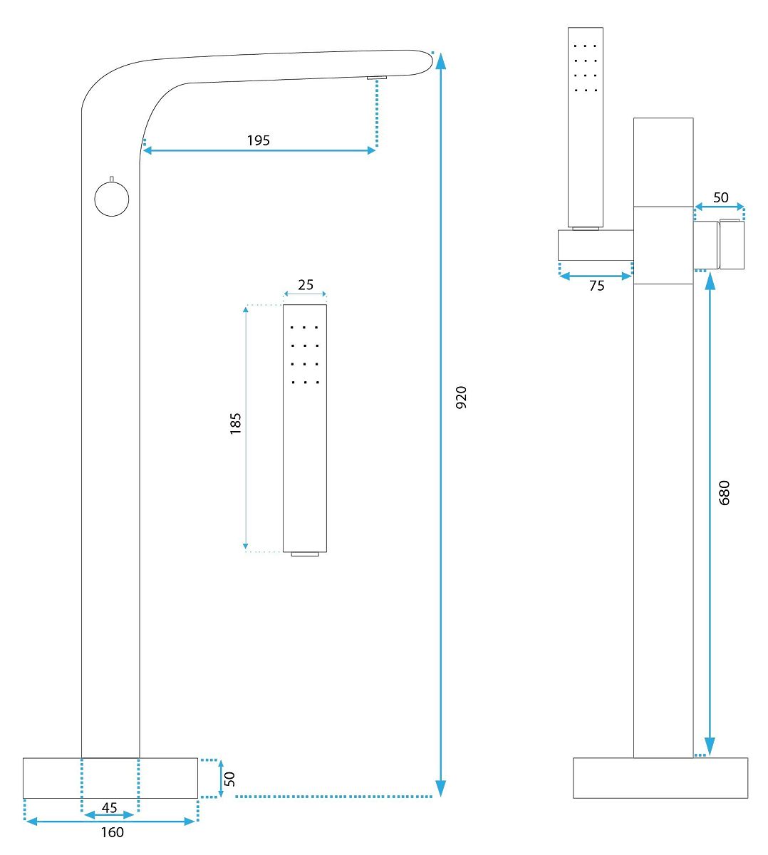 We present to you a beautiful, exceptionally functional, and modern faucet. It is a product that will perfectly complement your bathroom space while maintaining a flawless appearance and interior aesthetics. The faucet is designed for floor mounting. It is made of brass covered with a triple layer. Thanks to a special manufacturing phase, it is durable and easy to keep clean. We invite you to browse our offer.