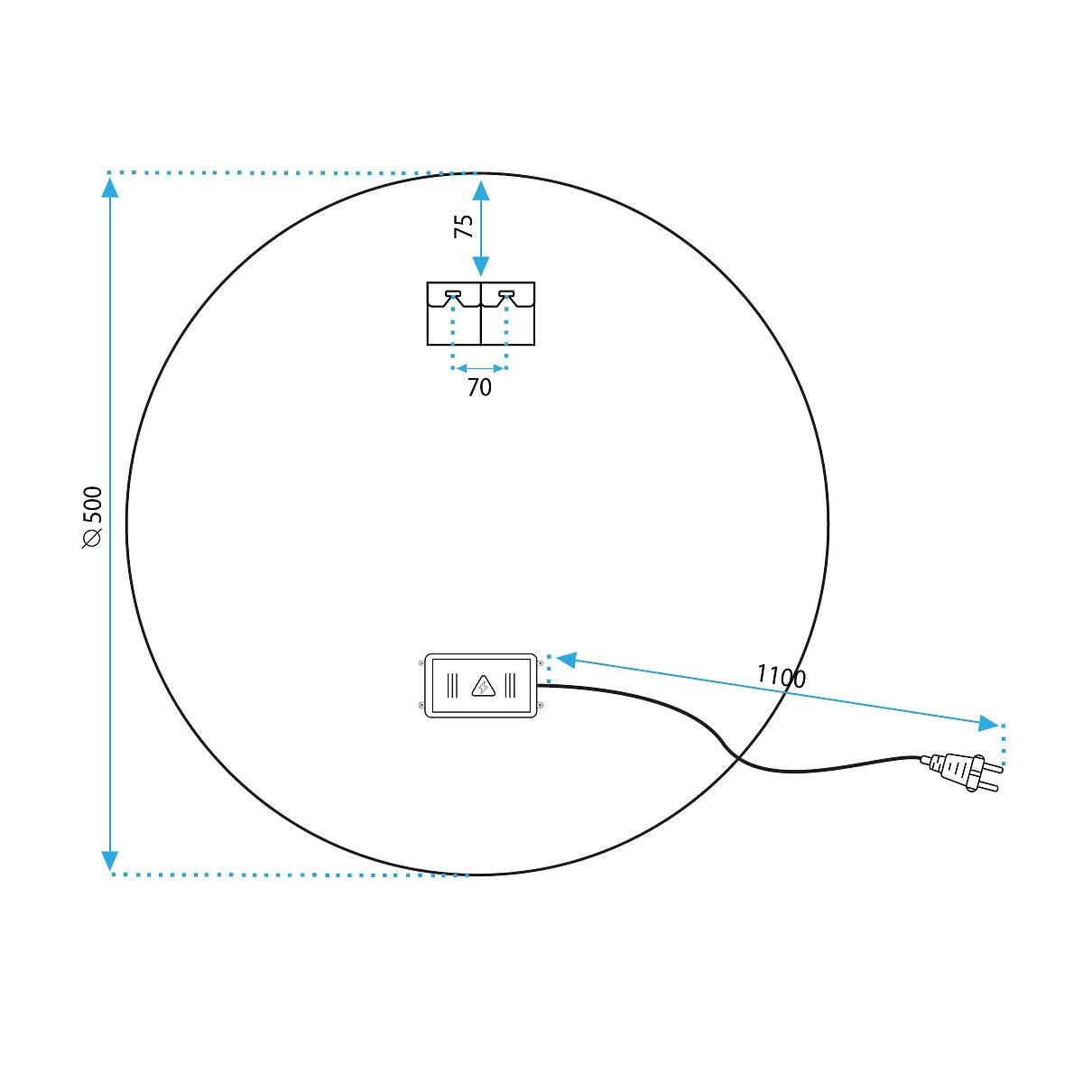 The round mirror with LED backlighting is an ideal choice for those who value convenience and modern design. The mirror is made from the highest quality materials, looks great, and is very durable. It offers three touch-changeable LED light colors – warm, neutral, and cool, and a heating function that prevents the surface from fogging. The touch switch located on the mirror surface is illuminated blue when the function is activated. White power cable with a length of 110 cm. Mirror thickness: 4 mm.