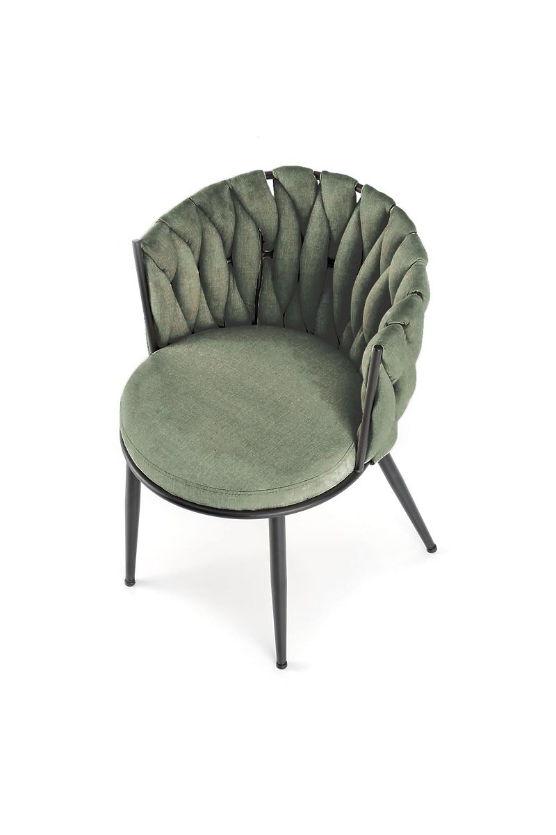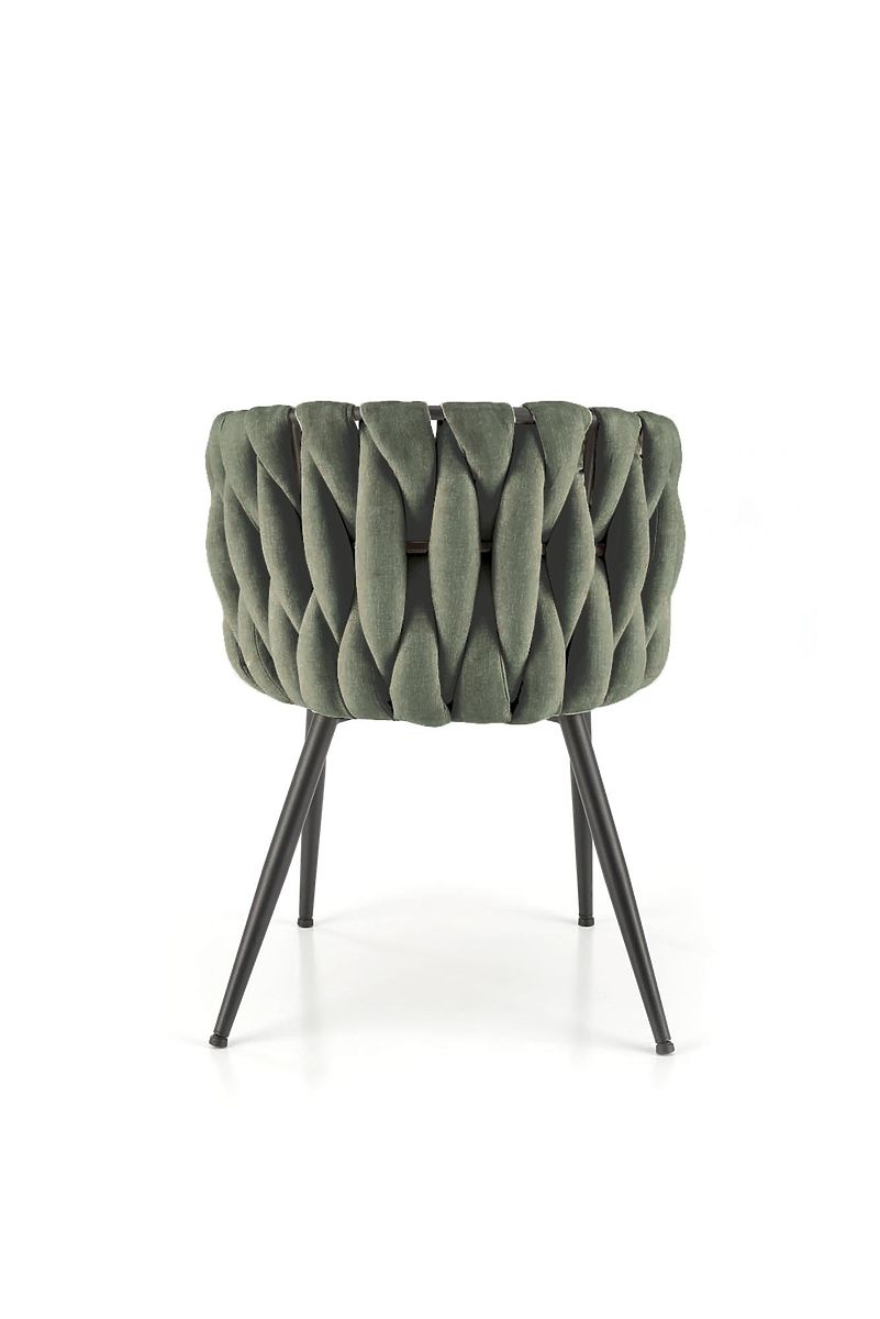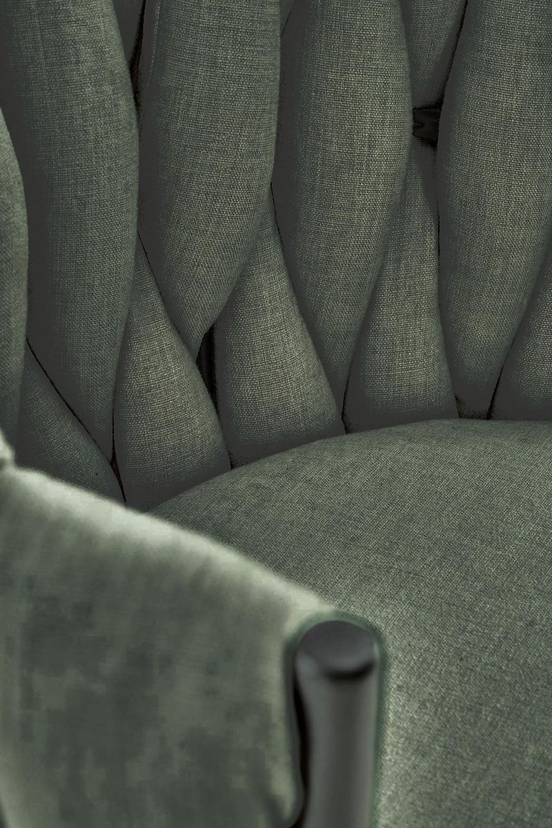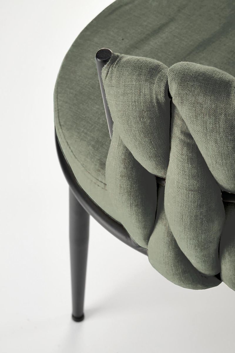 Olive-colored chair made of fabric and powder-coated steel. .. more