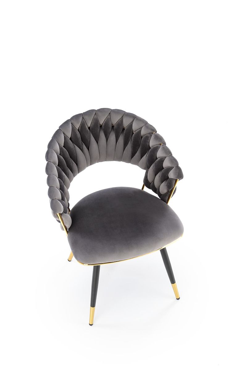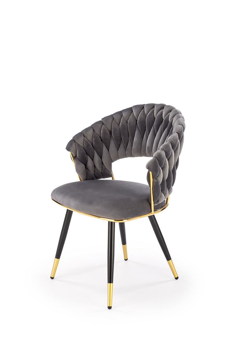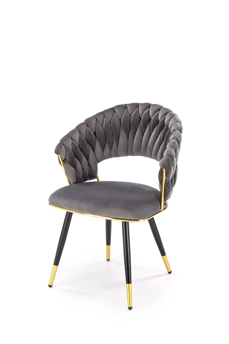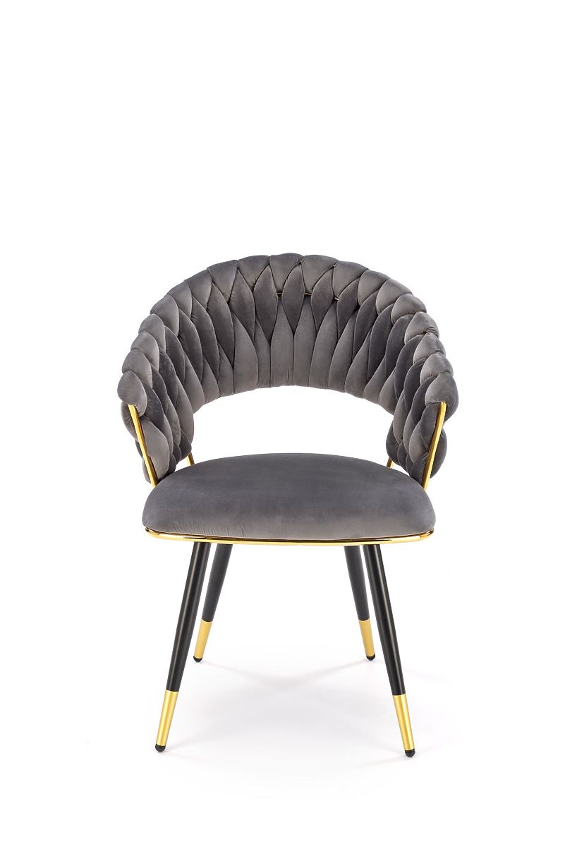 Gray velvet chair with chromed and powder-coated steel. .. more