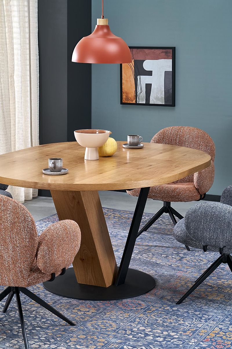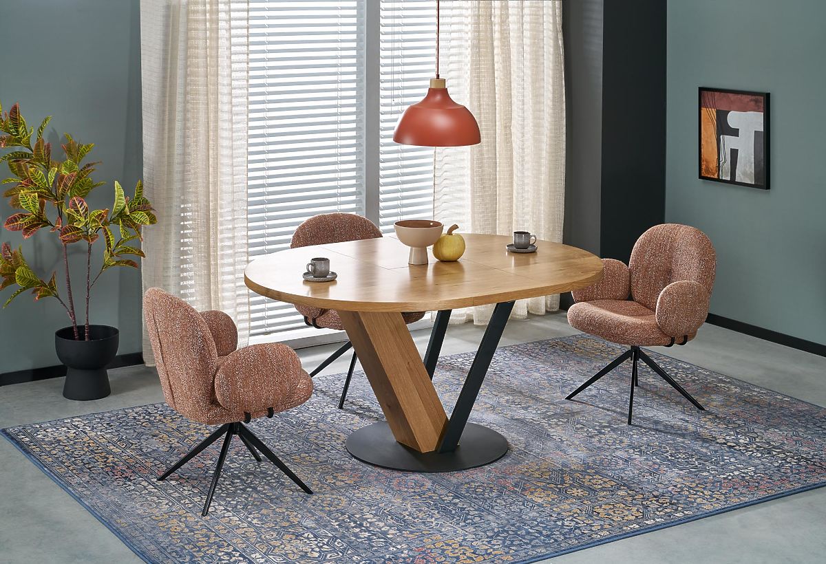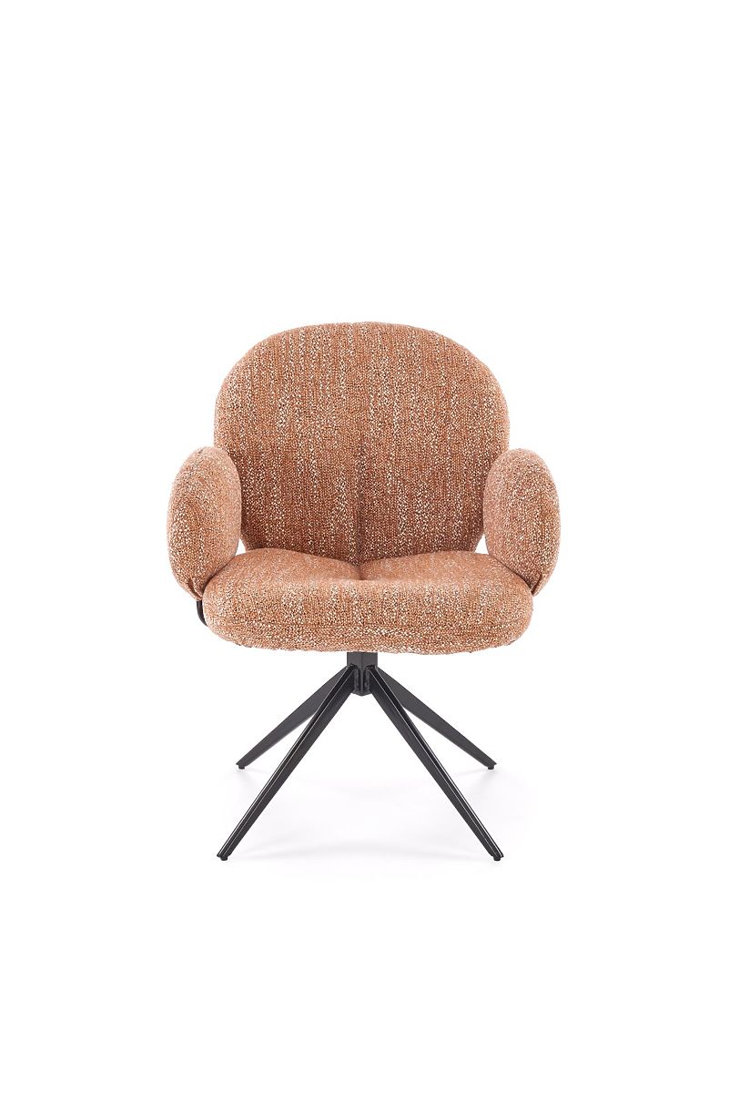 Swivel chair in cinnamon color with fabric and steel construction. .. more