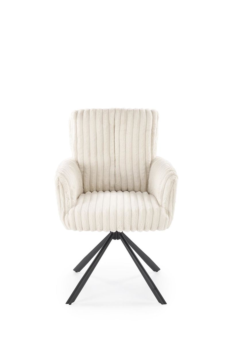 Swivel chair in cream fabric with powder-coated steel. .. more