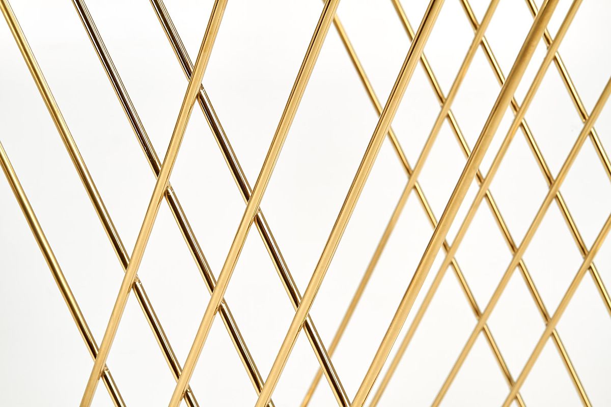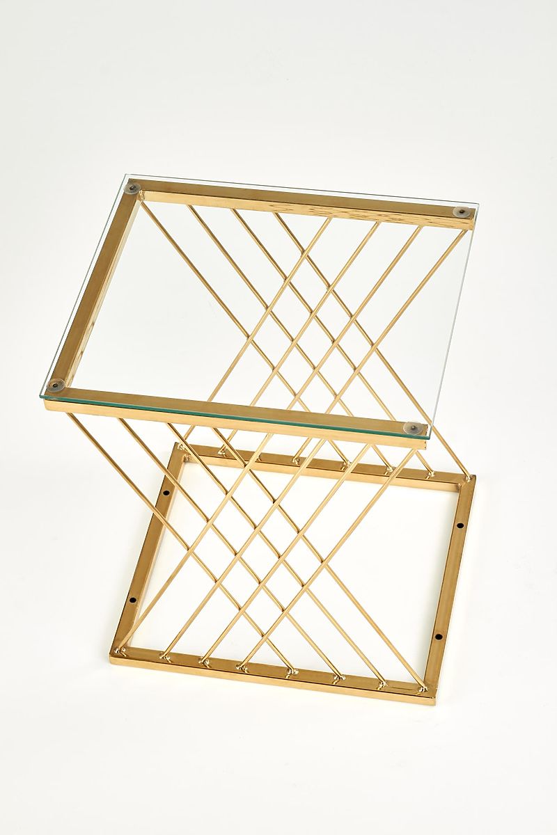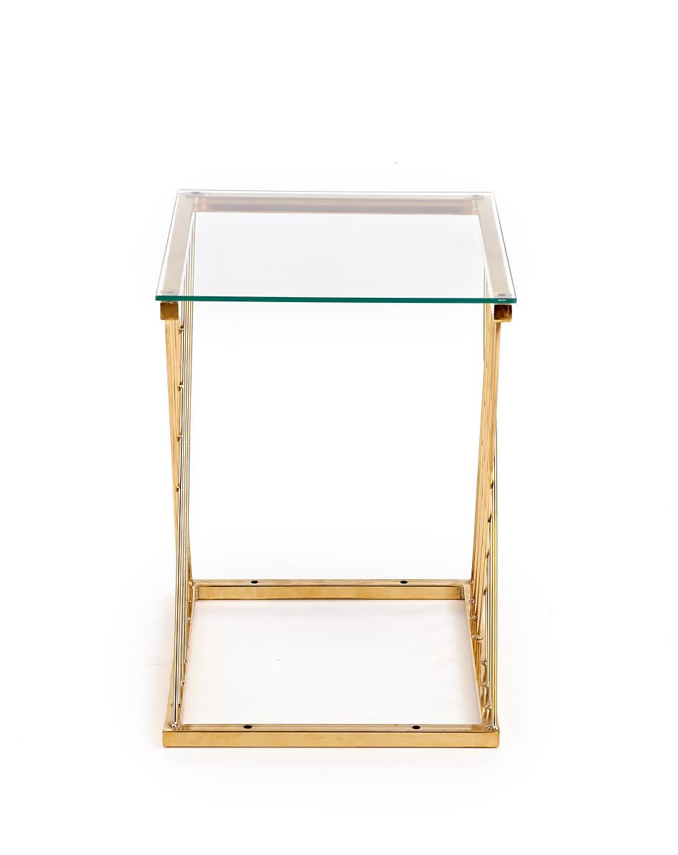 Gold and transparent table made of glass and chrome-plated steel. .. more