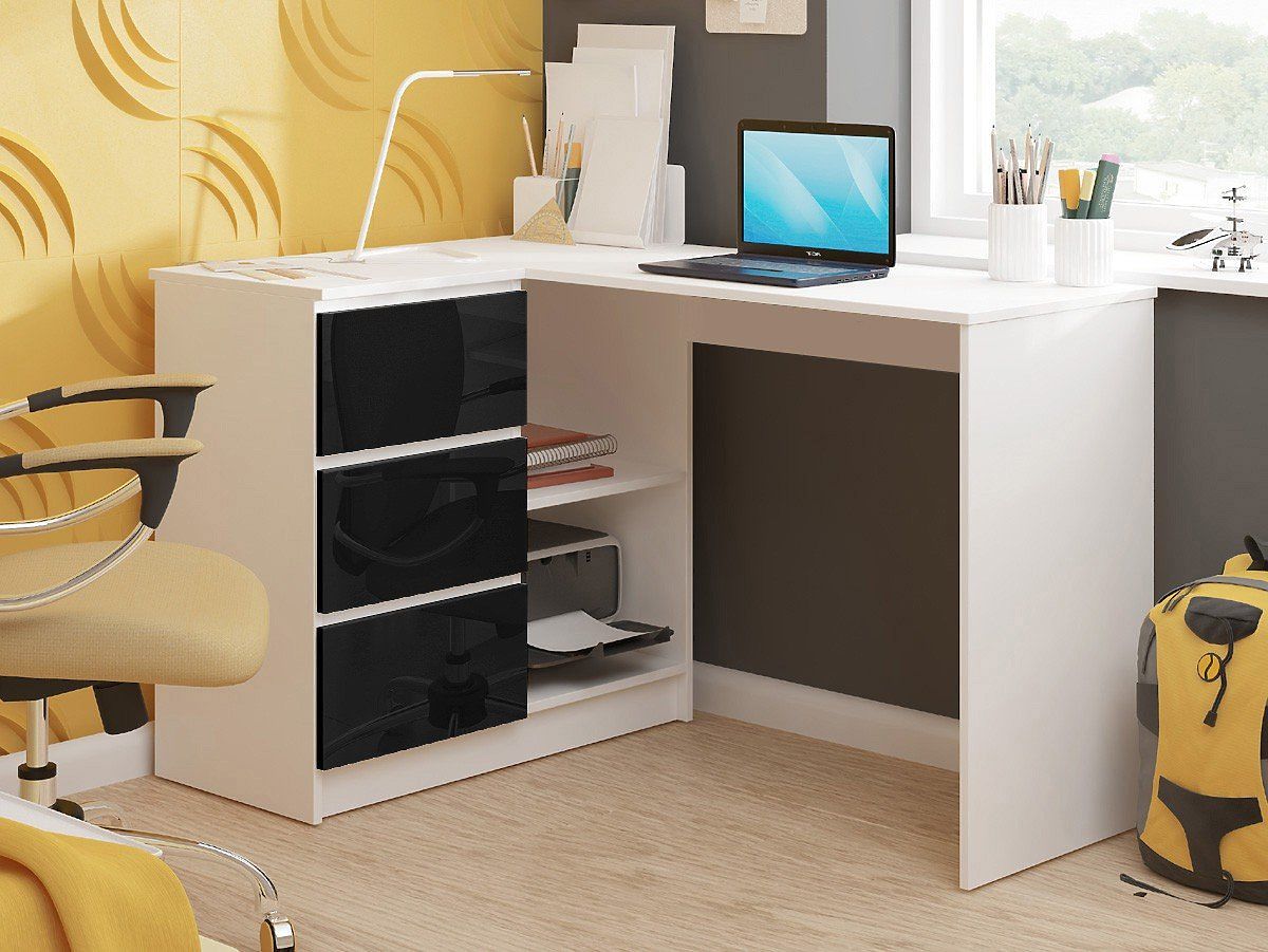Lukafurniture.eu » Furniture / Writing tables / CORNER DESK B16 124 cm LEFT 3 DRAWERS WHITE / BLACK GLOSS
