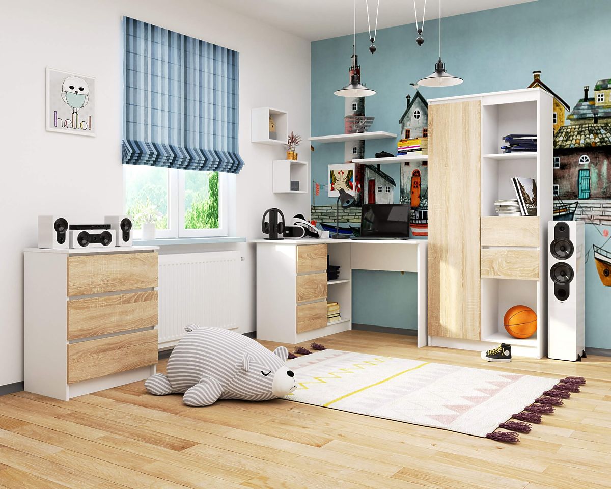 Lukafurniture.eu » Furniture / Writing tables / CORNER DESK B16 124 cm LEFT 3 DRAWERS WHITE / SONOMA OAK