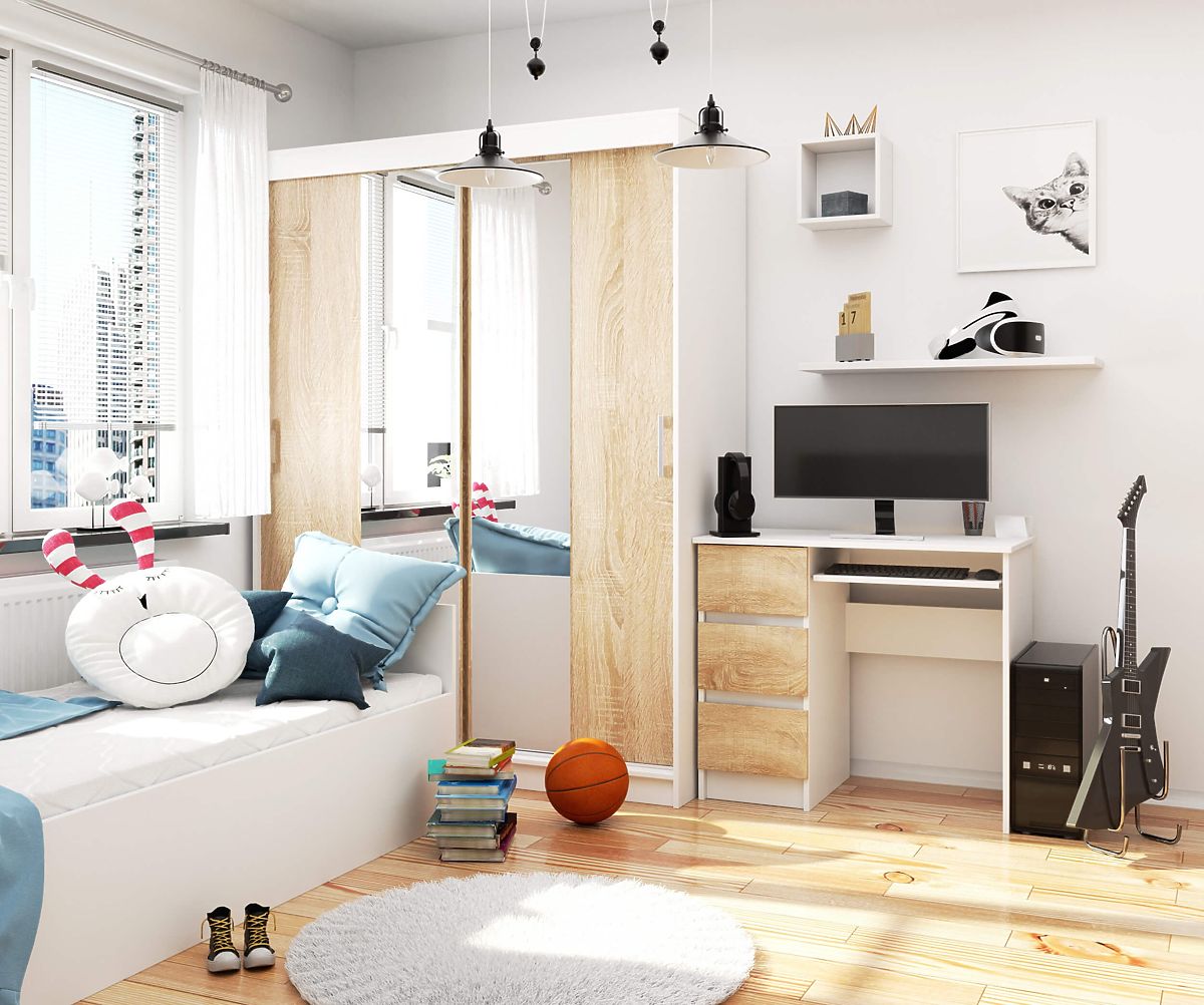 The desk's color is white, except for the drawer fronts, which are in oak sonoma color. This makes it stand out with its originality, especially against the background of monochrome furniture. It is ideally suited for interiors with a minimalist design. The desk is characterized by high durability. We offer a 24-month warranty period. Computer users will surely appreciate the functionality and high quality of the presented desk.