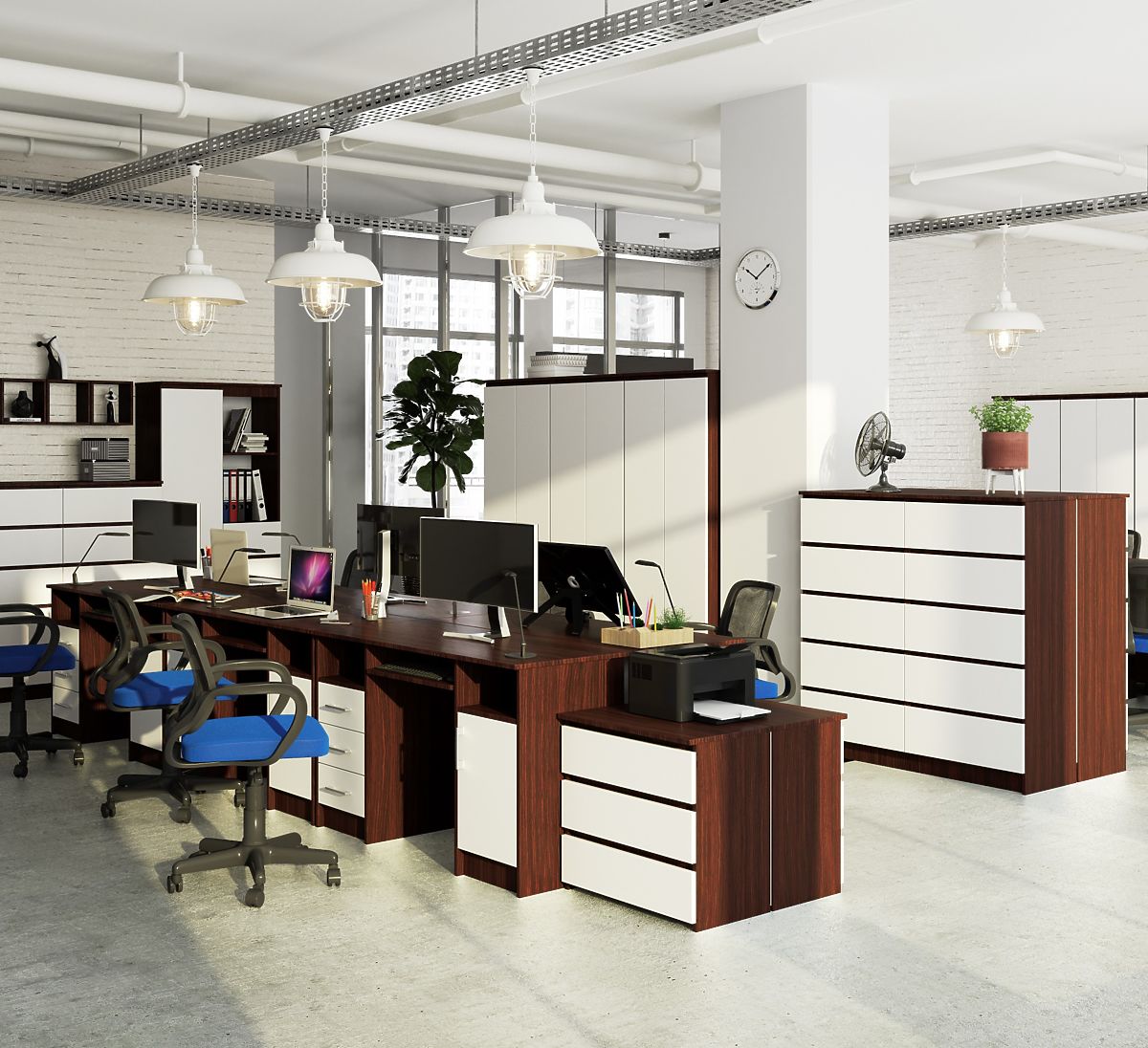 The ANA desk combines the elegance of classic colors – wenge and white – with a simple, functional form. Its design offers plenty of space: two open shelves, three drawers, and a cabinet with a shelf. Additionally, the large worktop allows for flexible arrangement of the monitor and documents. The pull-out keyboard shelf significantly enhances the comfort of working on a computer. The ANA desk is made from sturdy, abrasion-resistant laminated board, which is also used on the back of the furniture, allowing it to be placed in any configuration and location in the room. Perfect for an office, study, or teenager's room.
