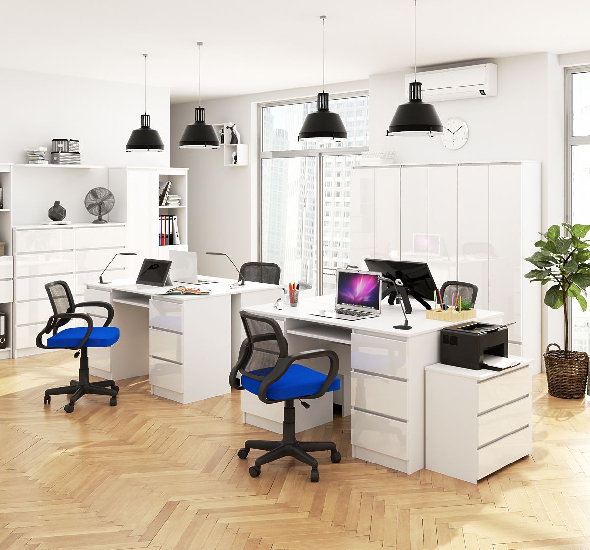 Lukafurniture.eu » Furniture / Writing tables / COMPUTER DESK A-11 135 cm 6 DRAWERS PK WHITE / WHITE GLOSS