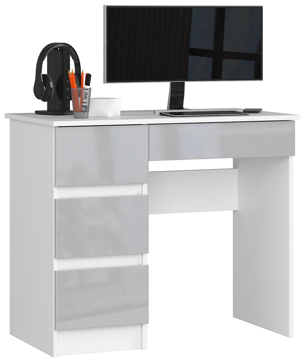 A well-chosen writing desk is key to effective and comfortable learning and working. The A-7 computer desk is definitely suitable for these tasks! Three spacious drawers with a depth of 38.5 cm located on the left side are perfect for storing notes or writing supplies, while the fourth pull-out under the top is ideal for placing additional equipment. The combination of white and metallic colors allows the computer desk to be placed in both an office and a colorful children's or youth room, where it will form a subtle interior accessory.