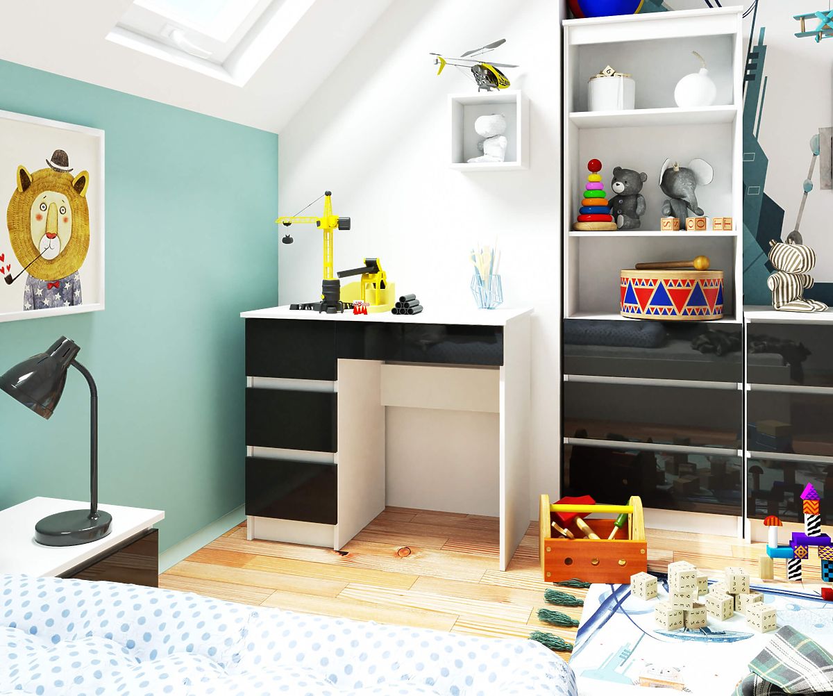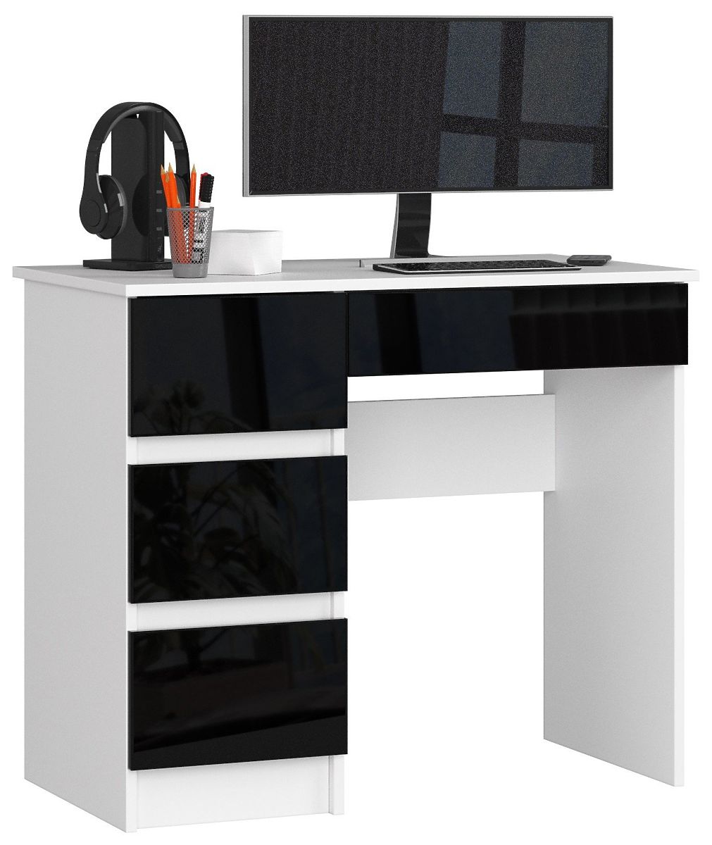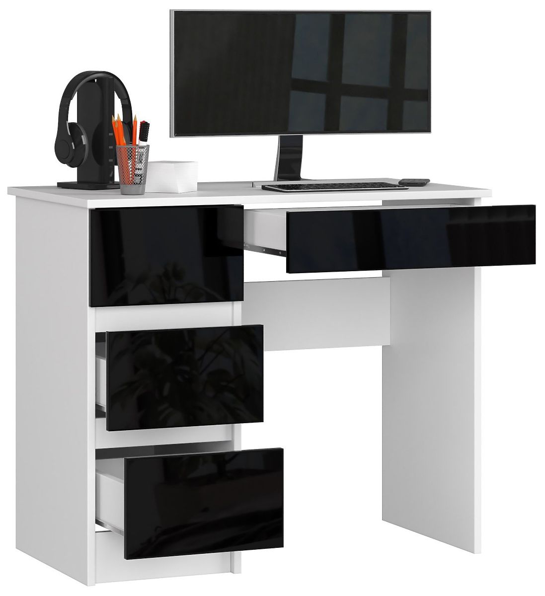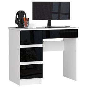 The A-7 computer desk is made from high-quality, abrasion-resistant laminated board. The white color is combined with black, glossy cabinet fronts. Perfect for those who value minimalism, simplicity, and elegance in their furniture. The desk is very stable and has been crafted with great care and attention to every detail. It fits perfectly in an office, student room, or living room. Suitable for both work and distance learning.