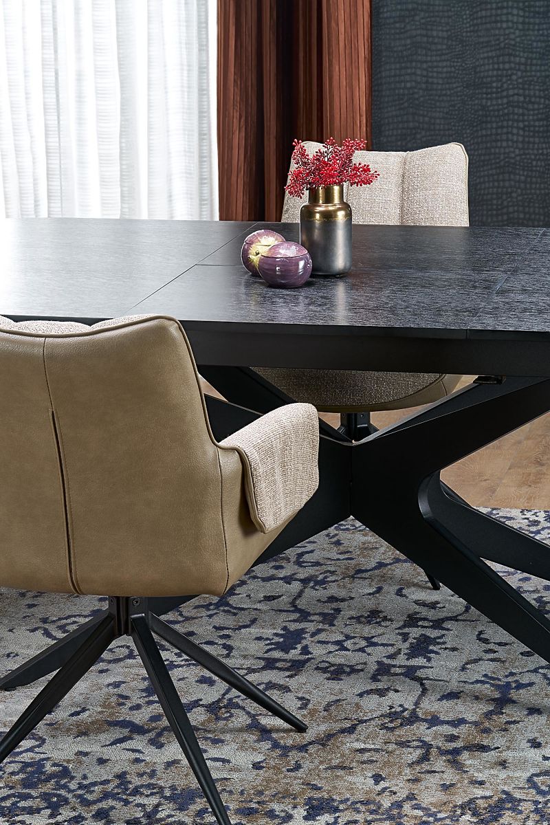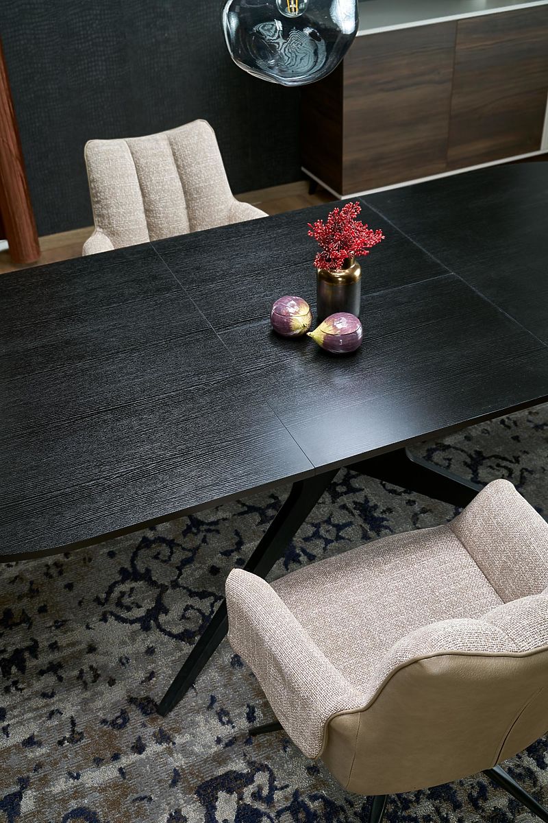 Dimensions: 180-240/100/76 cm, extendable table, material: MDF with melamine veneer / powder-coated steel, color: top - black, legs - black