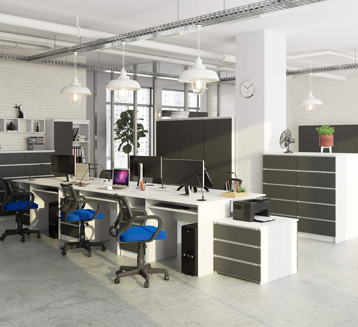 Writing desk with white body and graphite gray fronts. .. more