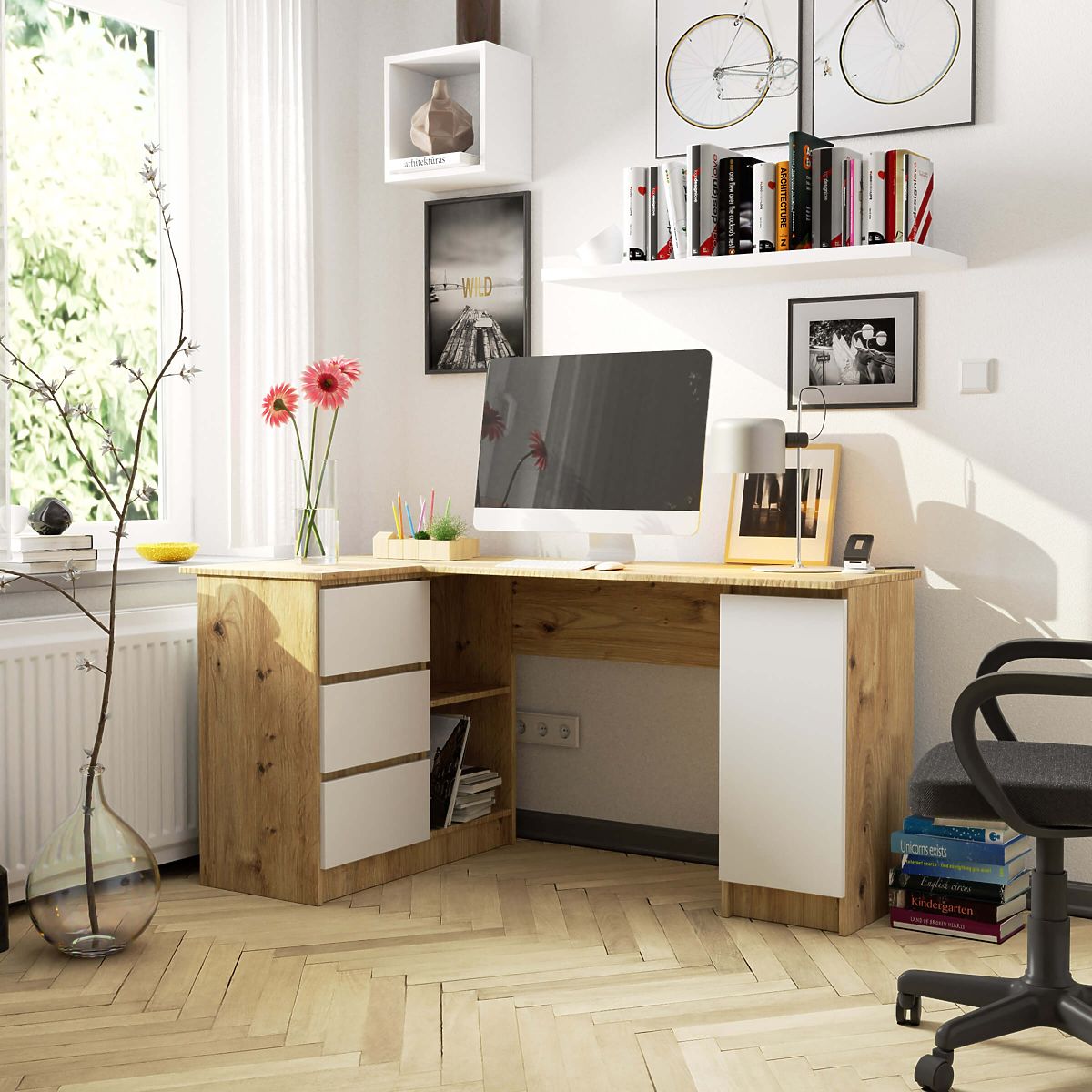 Lukafurniture.eu » Furniture / Writing tables / CORNER DESK B20 CLP LEFT-SIDED PK OAK ARTISAN / WHITE