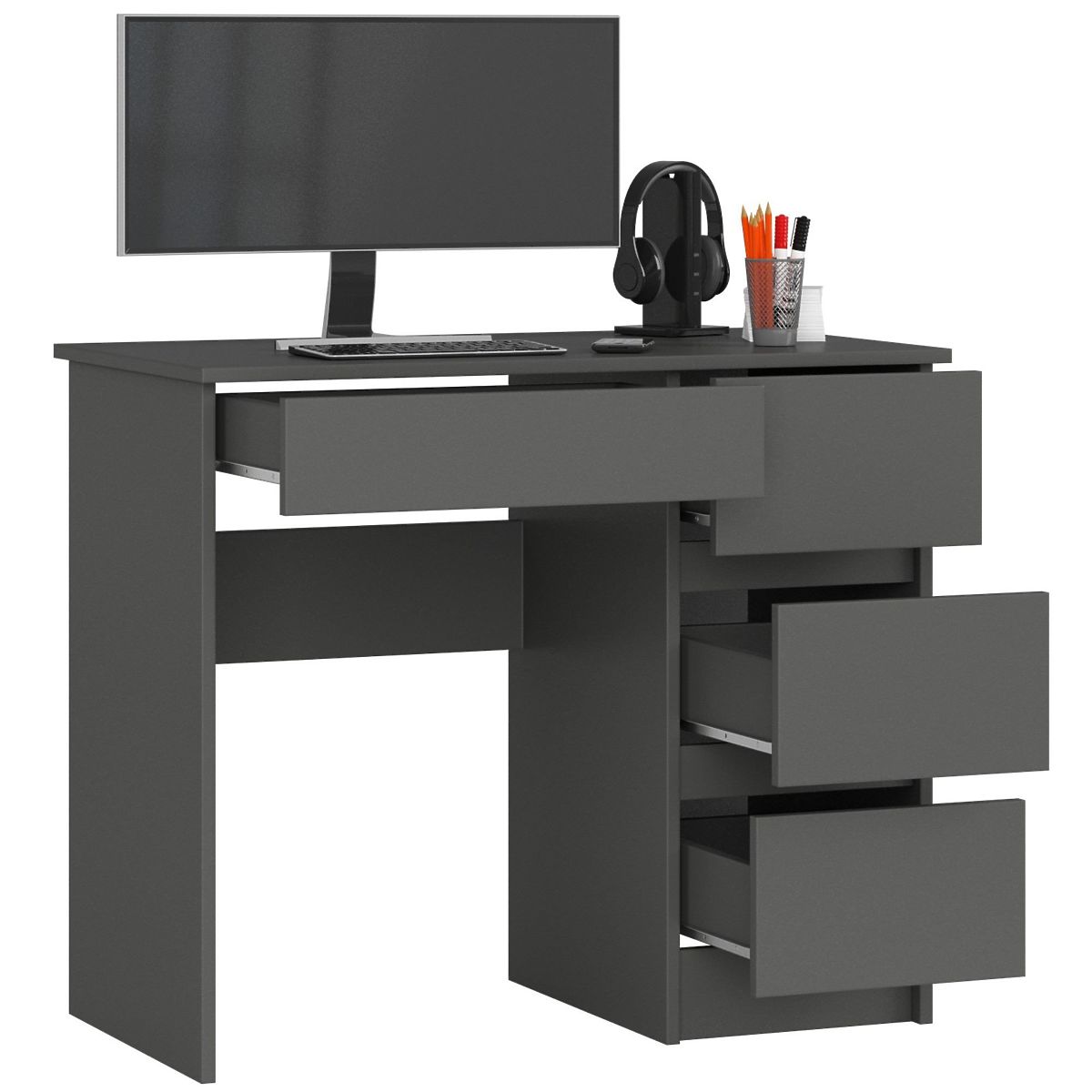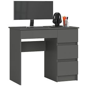 The A-7 computer desk is a small piece of furniture that fits well in a small space, whether it's an office or a living area. It's suitable for a home office or a child's/teen's room. The presented product is entirely in graphite gray. It consists of three drawers for versatile use. Simple in form yet exceptionally functional, this furniture will be appreciated by those who want to create a work or study corner but don't have much space available.