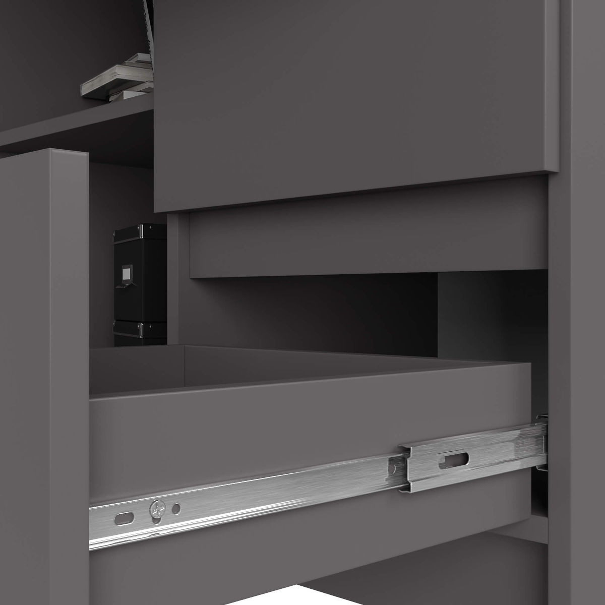 Corner desks are increasingly seen in homes, apartments, and offices. Not only are they fashionable, but also functional. People looking for furniture in a gray shade can choose the B16 corner desk with a width of 124 cm. It is perfect for studying or fulfilling work duties while having a modern appearance. It includes shelves and drawers where documents, books, office supplies, and much more can be stored. The furniture is characterized by durability. It is intended for self-assembly, which does not pose major difficulties as instructions are included with each order.