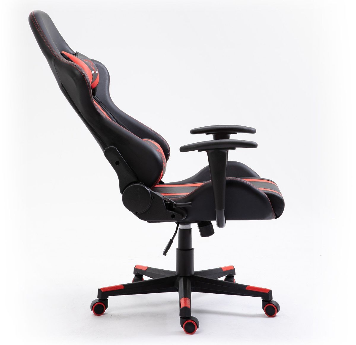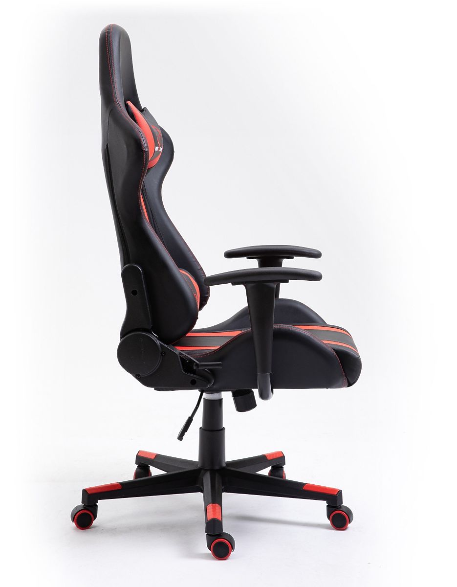 Specially designed chairs for gamers represent the latest generation of products created with great attention to every detail, considering long and above all comfortable seating at the computer and console. Perfectly shaped and ergonomic chairs ensure that the spine does not feel fatigue from prolonged use. The cushions added to the chair are not just a stylish accessory, but primarily a functional addition for proper spine support. The soft and very flexible foam that the chair is equipped with supports weight well and guarantees comfort during long-term use. Adjustable armrests up and down significantly enhance the usability of the presented chair. Silicone-rubber wheels ensure quiet and smooth movement across the floor. The certified gas lift can support a load of up to 130 kg, and the gaming chair itself has a strong metal frame.