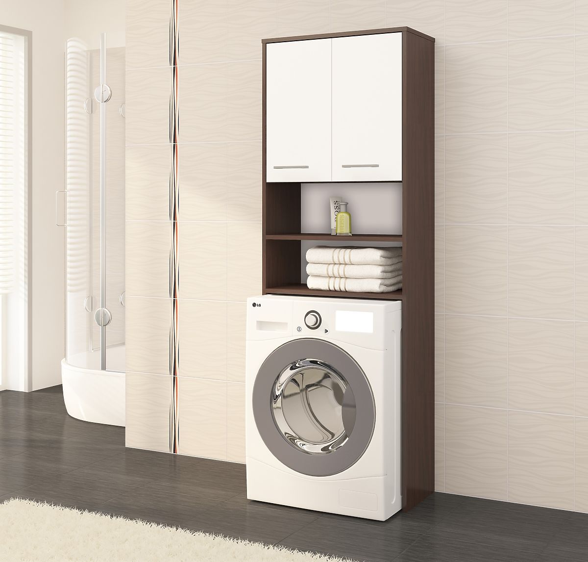 Lukafurniture.eu » Bathroom & Toilet / Bathrooms lockers / BATHROOM CABINET FIN OVER WASHING MACHINE WENGE / WHITE